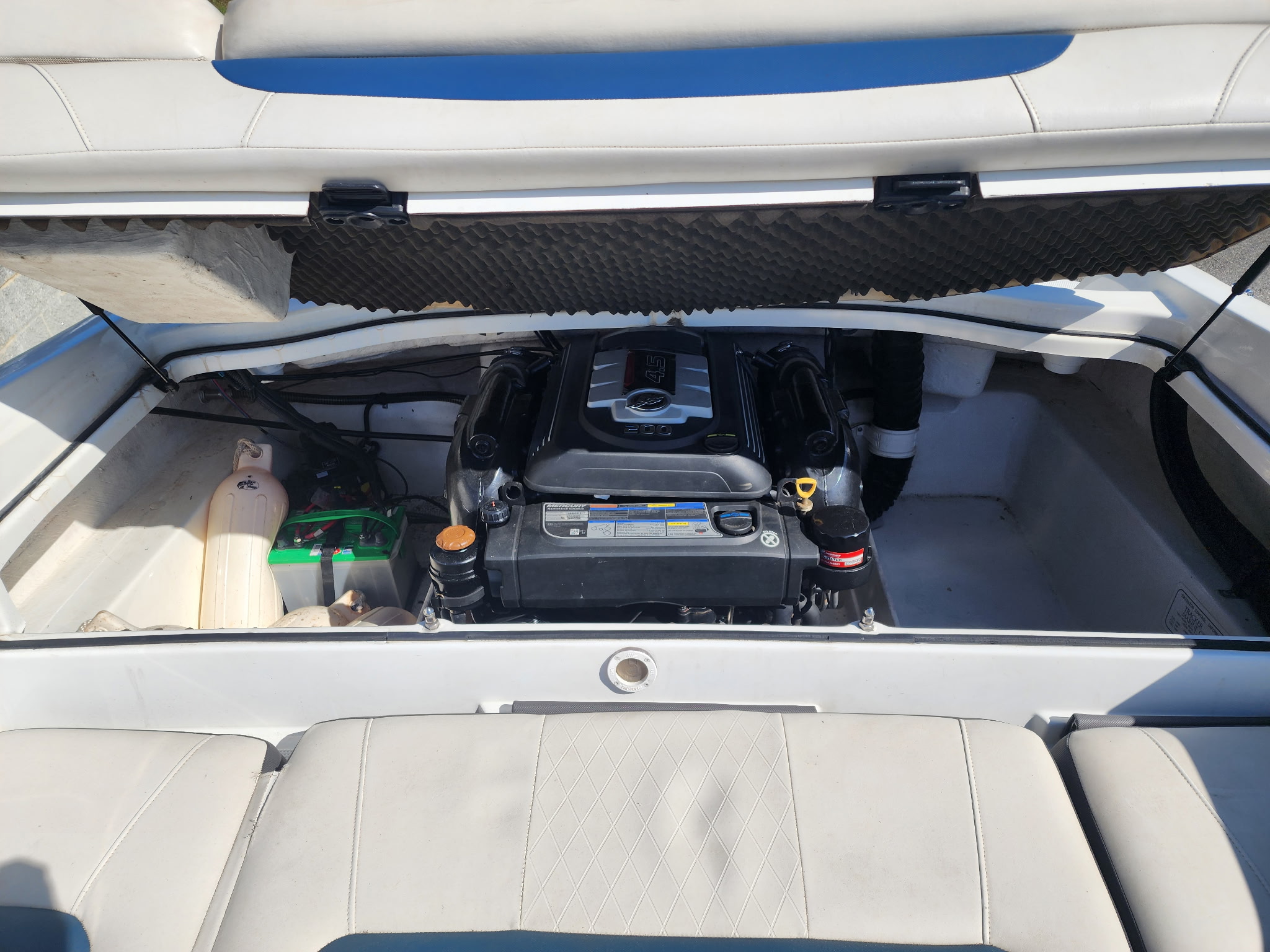- Finished gelcoat full-length fiberglass foam-filled stringer system bonded to the hull
