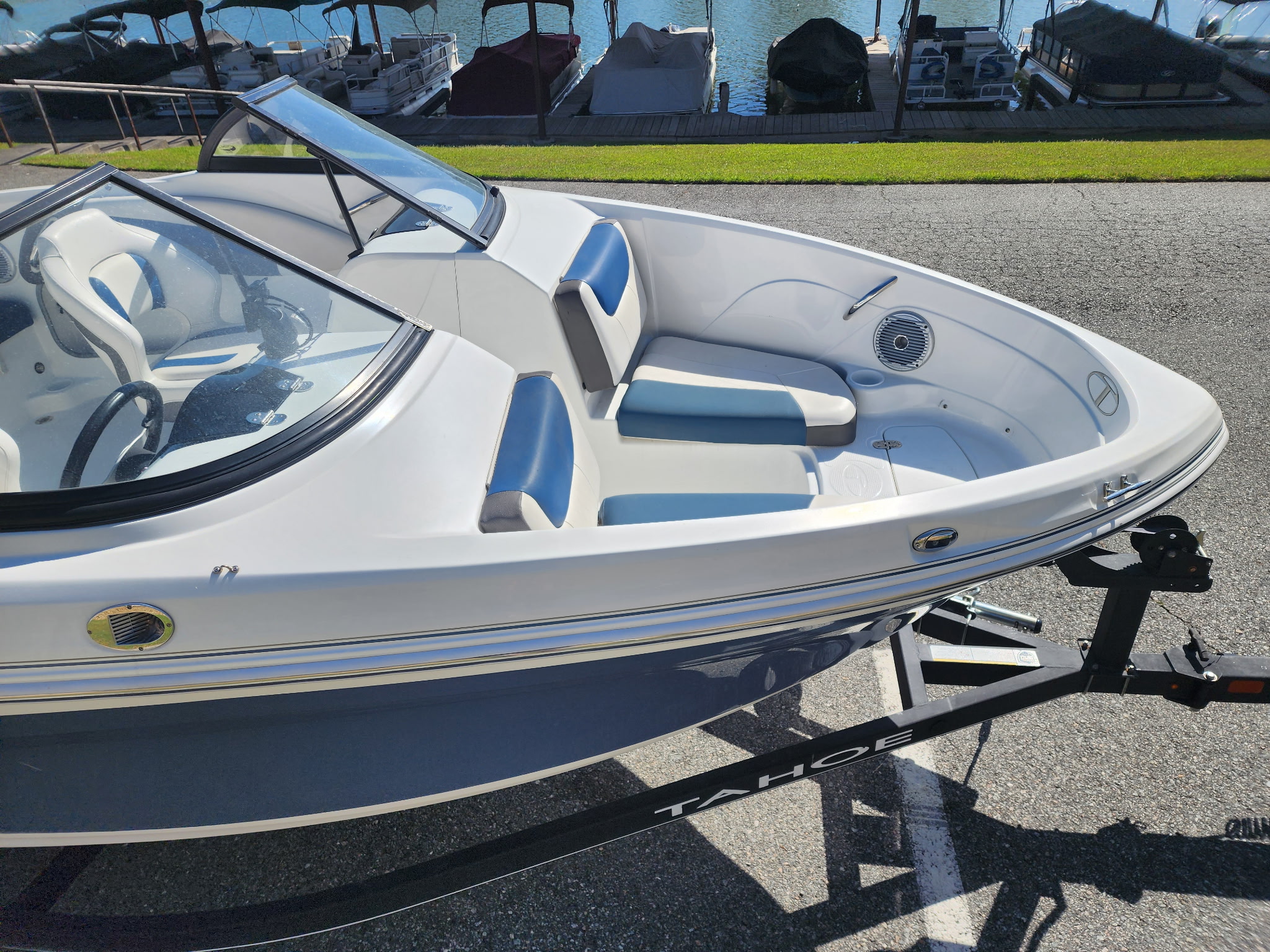 Tahoe 500 TS powered by a 4.5 V8 Mercruiser. Features include a single axle trailer, windshield, glove box, ski locker storage, stereo, dual captains chairs, and more. Only $19,995 or payments as low as $239/month. For more information please call us at Central Georgia Marina 478-474-9995 or text us at 478-203-9441.
