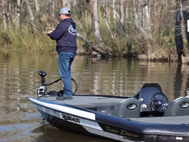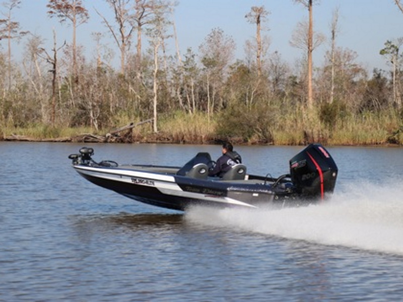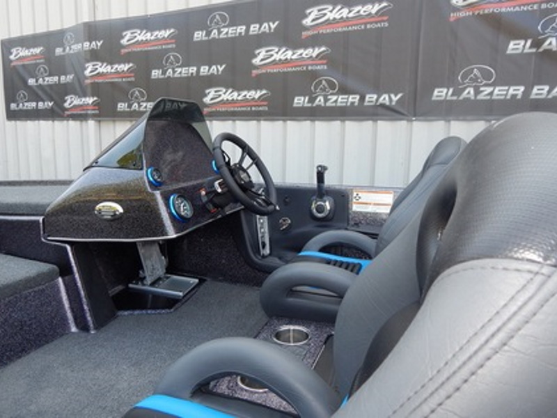 Agile and fast, the Blazer 595 Pro Elite bites on turns and handles rough water better than most sub-20-foot-long bass boats. At 19.5 feet, the 595 gets up on plane quickly with Blazing speed. With a padded deck and lots of storage, the 595 Pro Elite gives you everything you need chase that perfect catch.