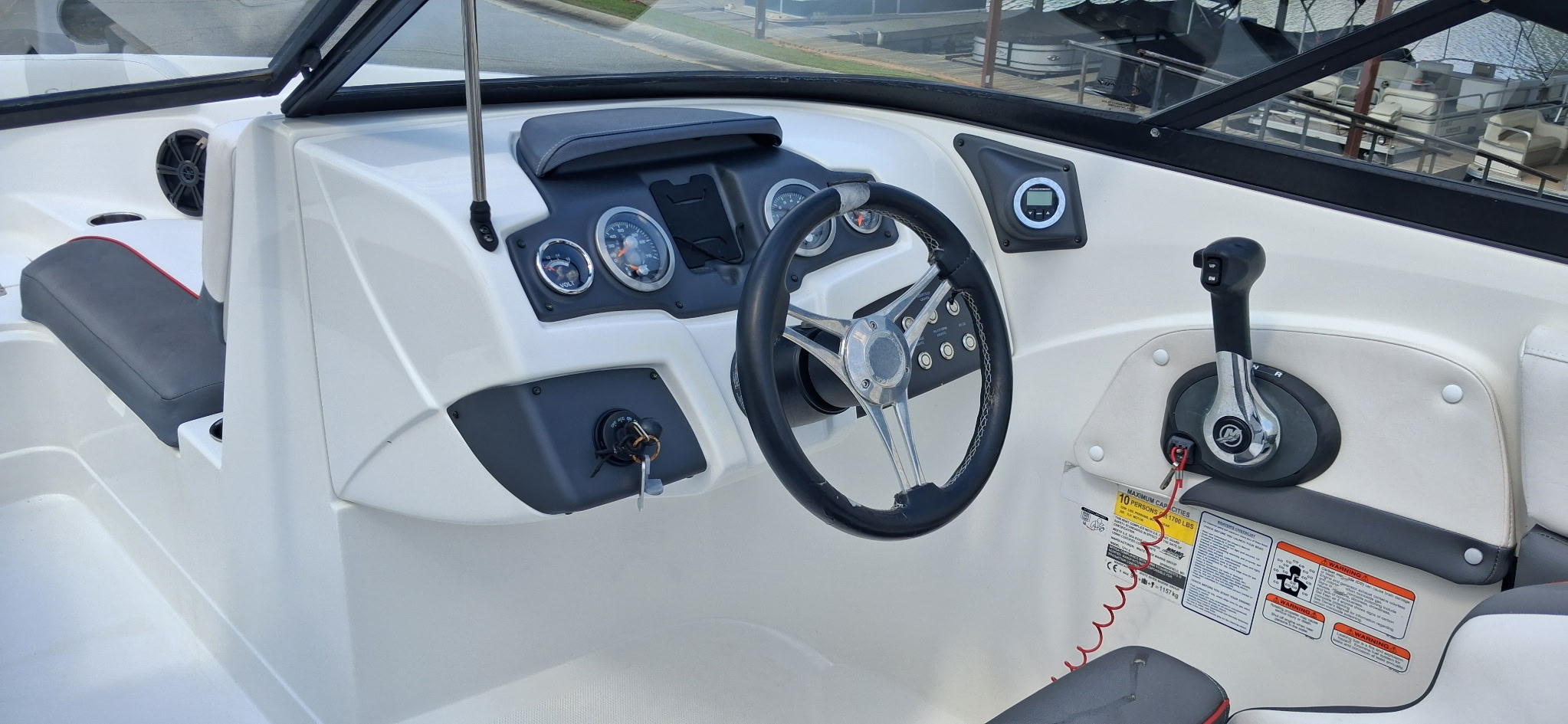 - Trash receptacle-ready storage compartment below starboard U-lounge cushion