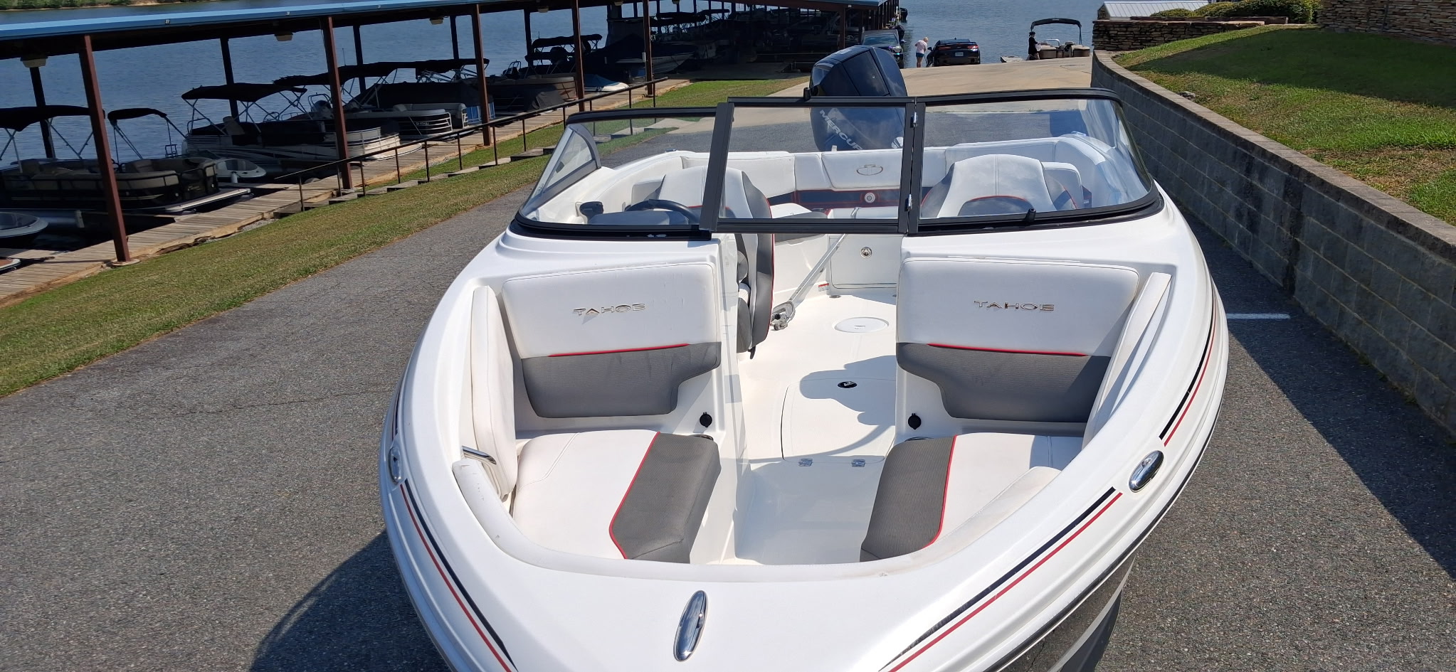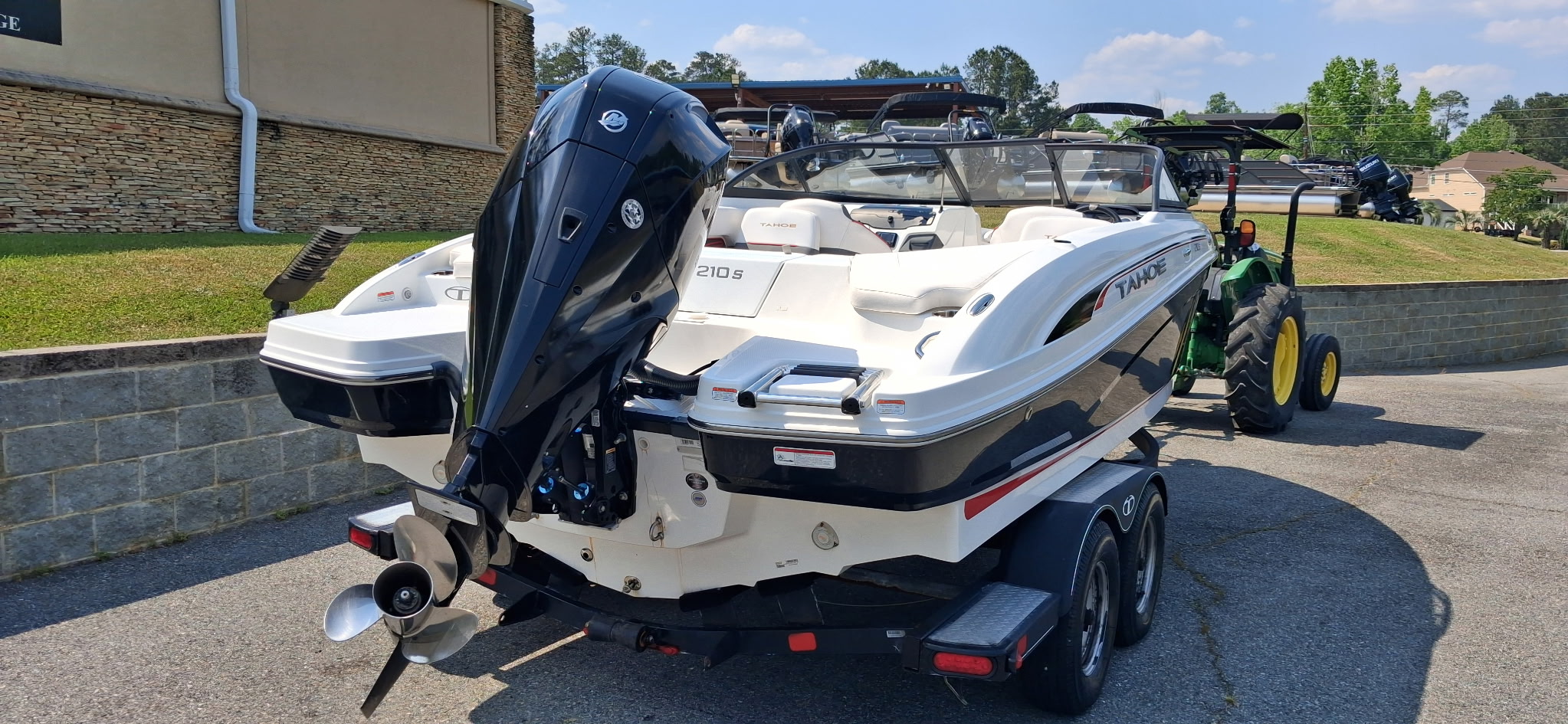 2022 Tahoe 210S powered by a 200 Mercury. Only 159 Hours. Features include a dual axle trailer, windshield, stainless steel prop, ladder, stainless cupholders, depth finder, ski locker storage, dual captain bolster seats, glove box, and more. Very Clean! Only $34,995 or payments as low as $399/month. For more information please call us at Central Georgia Marina 478-474-9995 or text us at 478-203-9441.