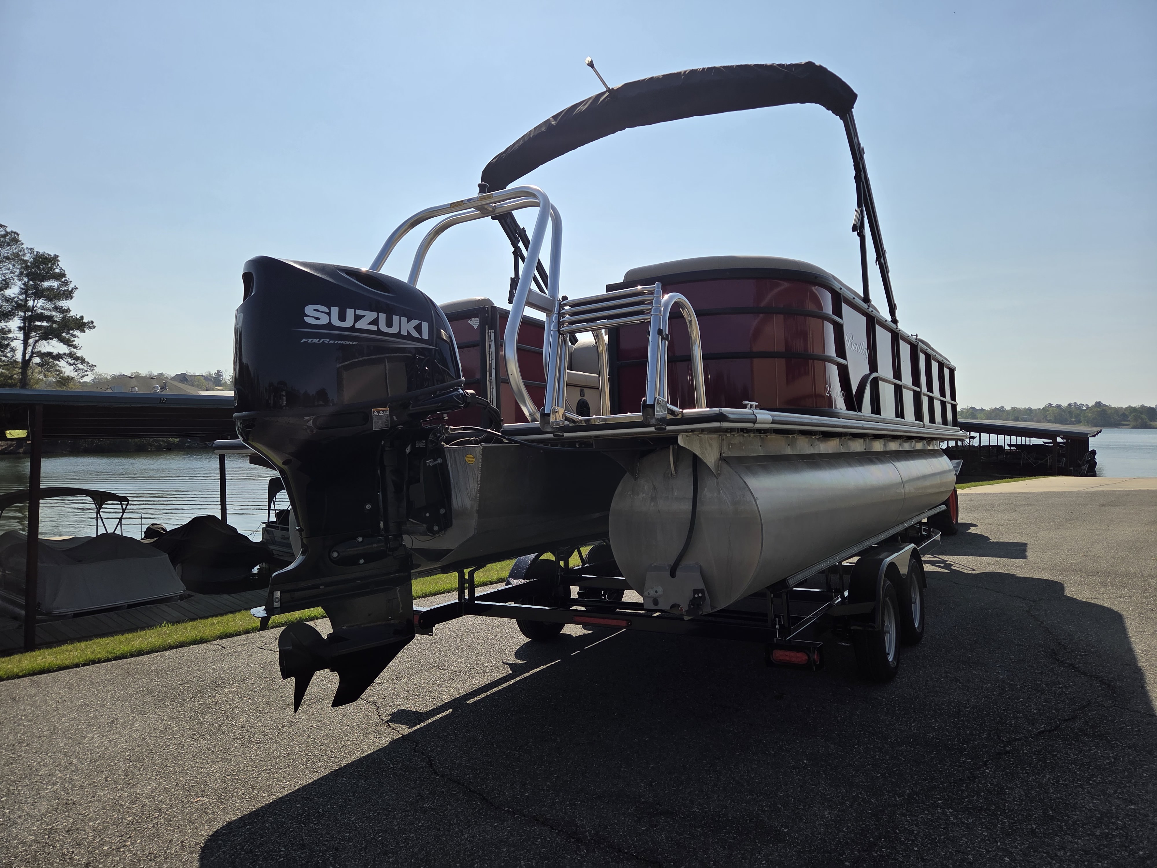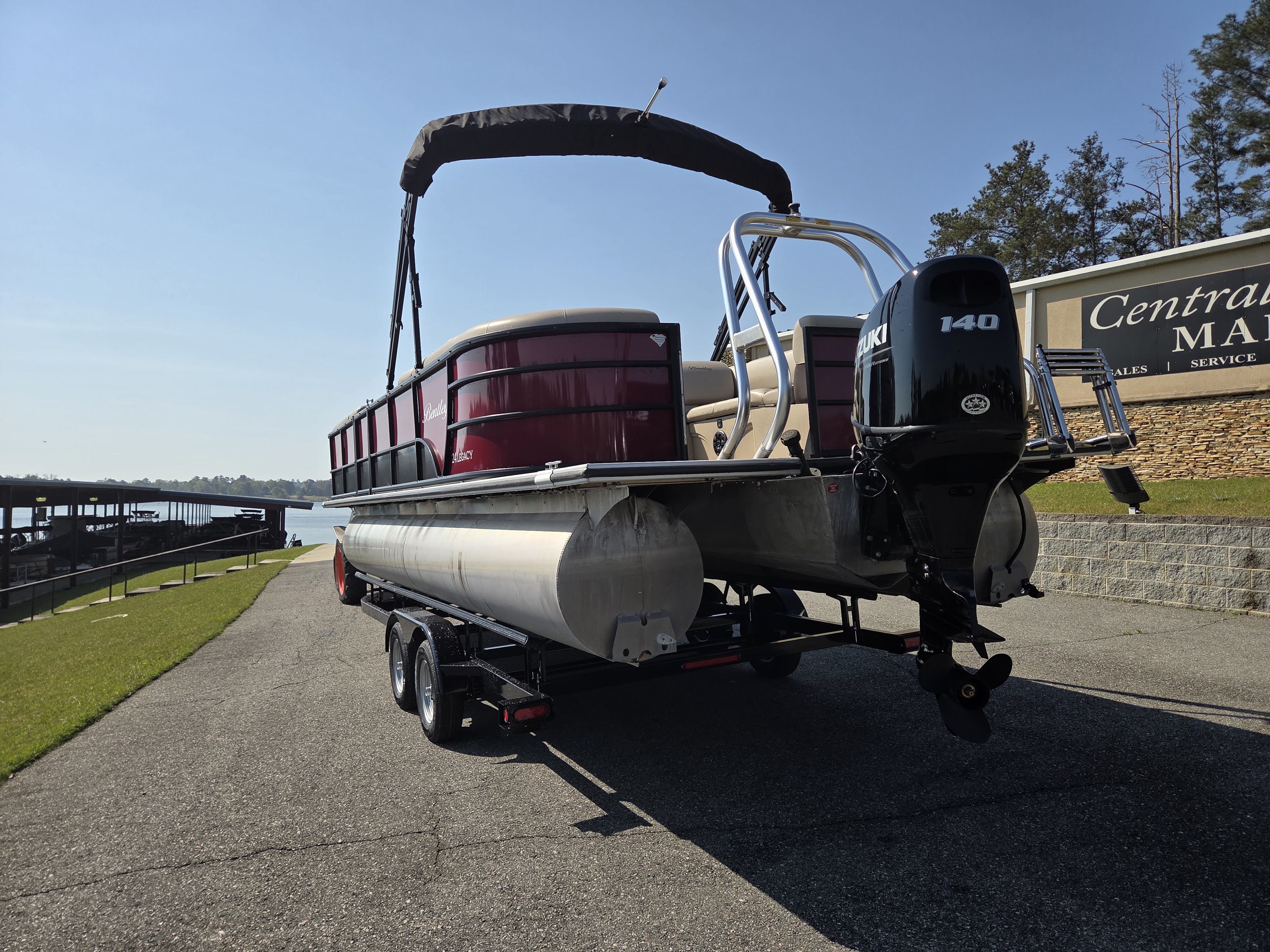 2023 Bentley 240 Navigator powered by a 140 Suzuki. Features include seagrass flooring, a ski tow bar, cover, stainless steel ladder, bimini top, stainless steel cupholder, bluetooth/am/fm/ radio, captains chair, capacity for 16 people, storage under all benches, and more! Only $32,995 or payments as low as $399/month. For more information please call us at Central Georgia Marina 478-474-9995 or text us at 478-203-9441.