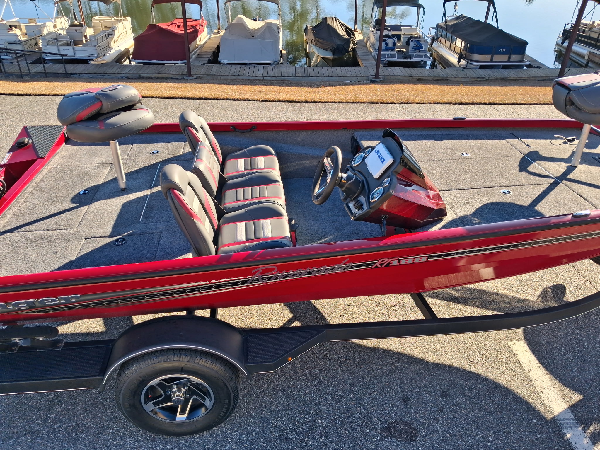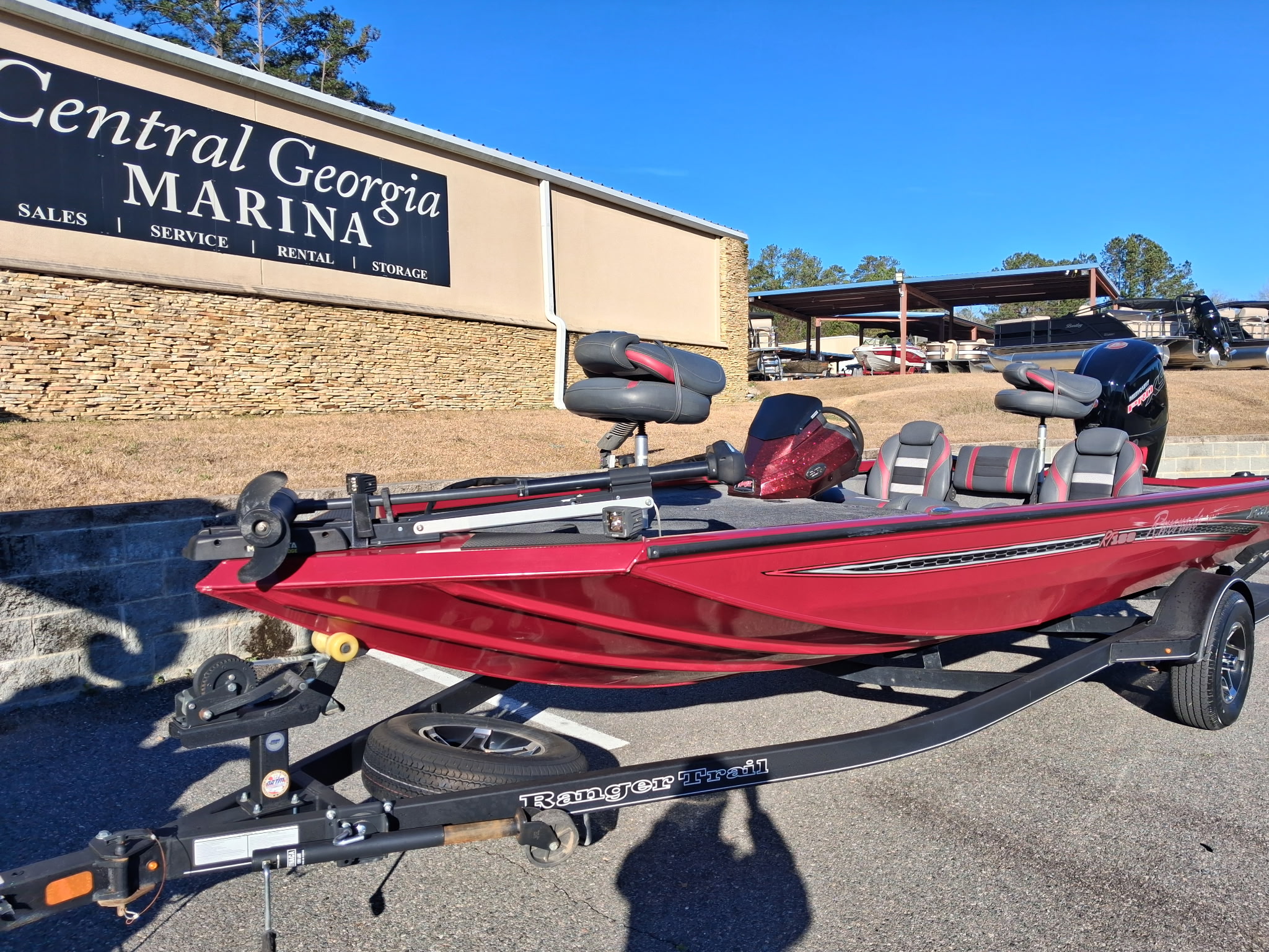2023 Ranger RT188 powered by a Mercury 115 Pro XS. Features include a single axle trailer with spare tire, Minn Kota trolling motor, Lowrance in the dash, transom saver, stainless steel prop, ladder, fishing seats, and more. Only $29,995 or payments as low as $289/month. For more information please call us at Central Georgia Marina 478-474-9995 or text us at 478-203-9441.