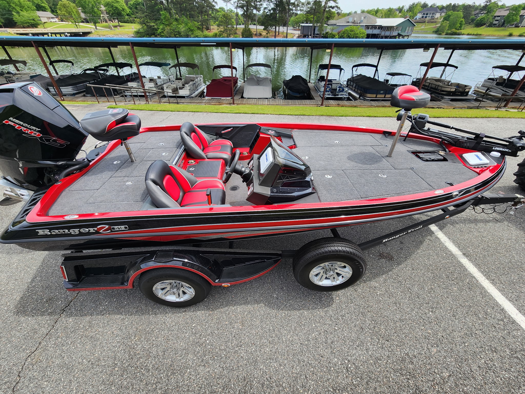 2023 Ranger Z518 Cup powered by a Mercury 200 Pro XS. Features include a single axle trailer, ghost trolling motor, HDS 9's at console and bow, active target 1, hot foot, pro trim on steering wheel, new battery, factory cover, all boxes for electronics, stainless steel prop, transom saver, fishing seats, spare tire with carrier, stainless steel cupholders, and more. Only $49,995 or payments as low as $549/month! For more information please call us at Central Georgia Marina 478-474-9995 or text us at 478-203-9441.