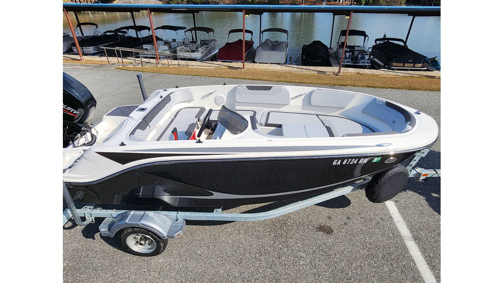 2024 Bayliner Element 15 powered by a Mercury 60. Features include an aluminum prop, stainless steel ladder, single axle trailer, windshield, upgraded flooring, fire extinguisher, radio with Bluetooth, bow filler cushion, spare tire, and more. For more information call us at Central Georgia Marina 478-474-9995 or text us at 478-203-9441.