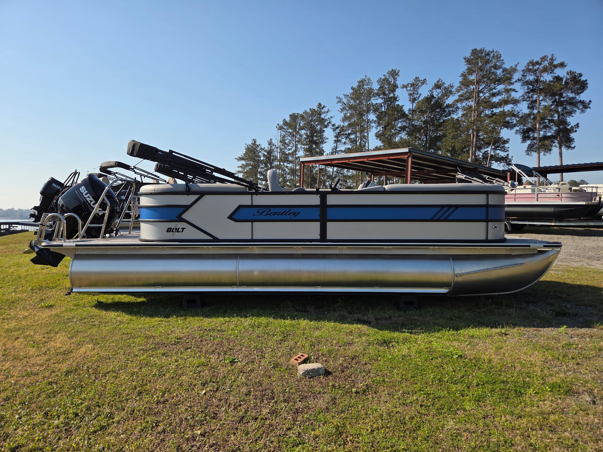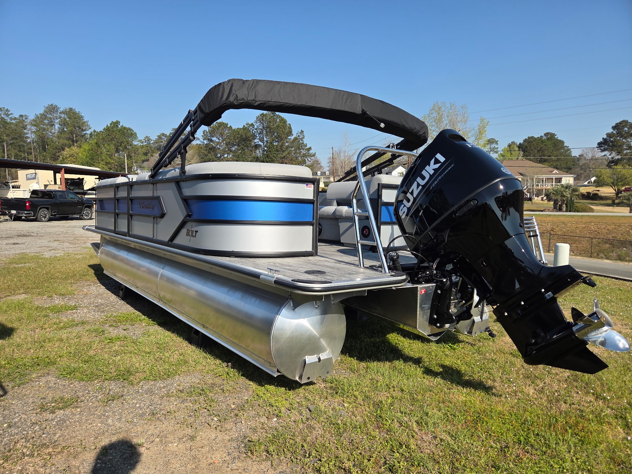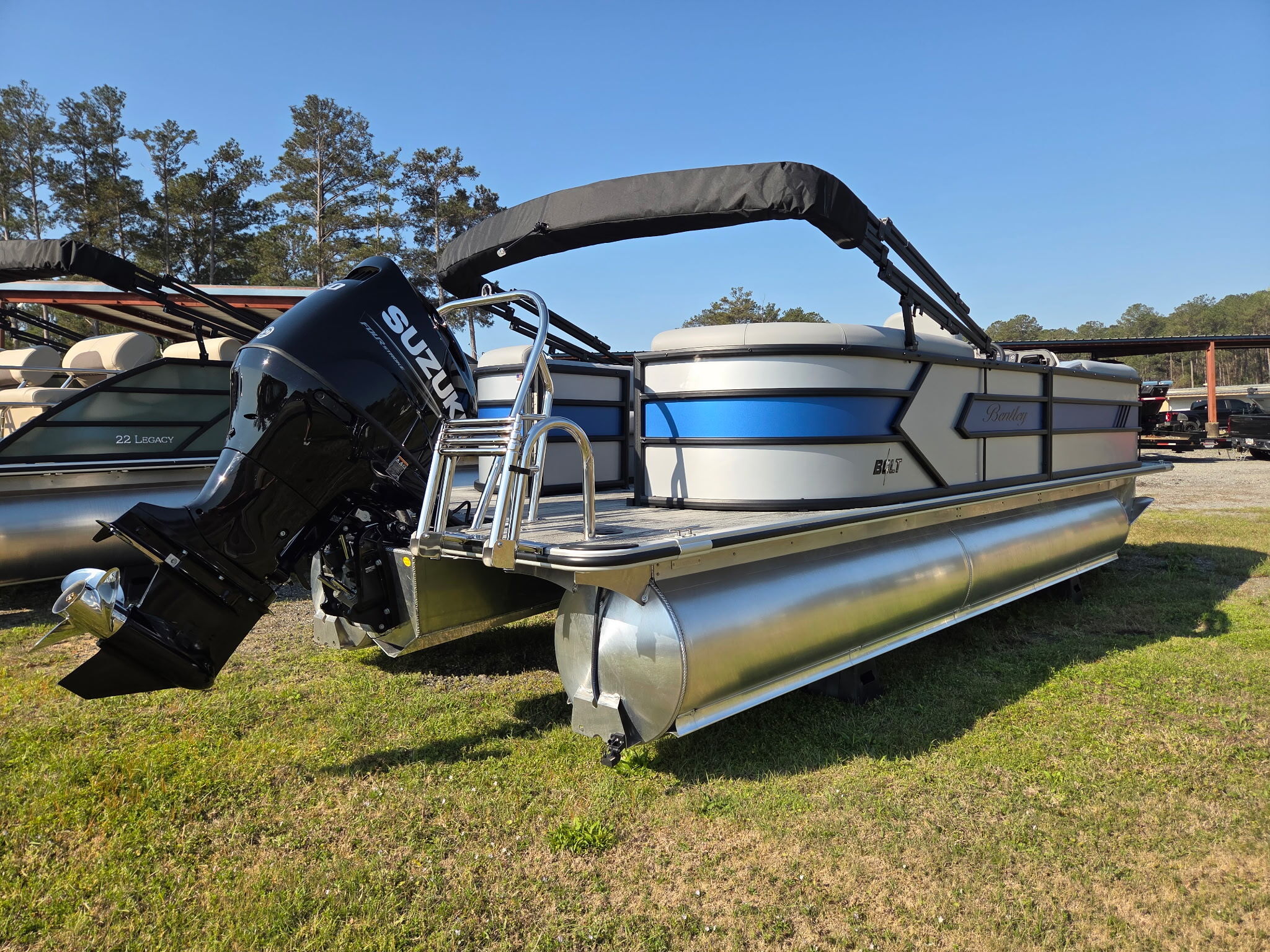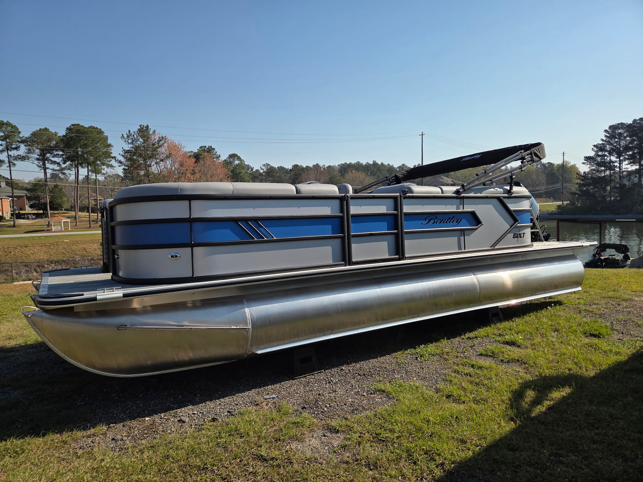 Meet the Bentley Bolt, where affordability meets adrenaline. Built for water enthusiasts craving a sporty escape, this brand-new triple toon delivers an unexpectedly thrilling ride, reaching top speeds in the mid-40s mph range. Engineered with lifting strakes for enhanced maneuverability, the Bentley Bolt offers a smooth, controlled experience even at high speeds. Sleek, powerful, and ready for adventure, the Bentley Bolt redefines what a pontoon can do.