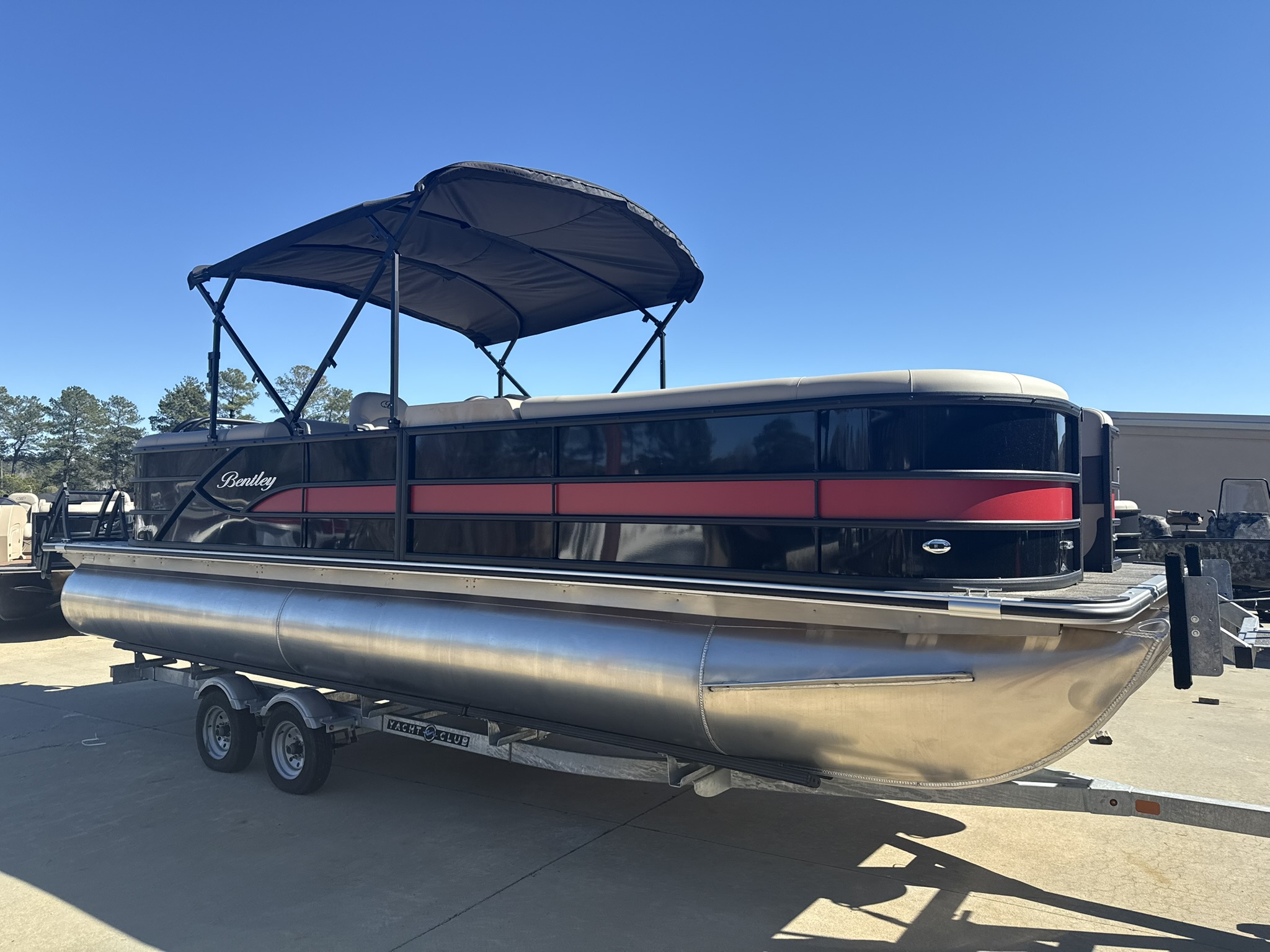 Enjoy smooth cruising and plenty of space with this Bentley Navigator 243 Tritoon, powered by a 200 HP Suzuki outboard motor. With its tan interior, tan Lakeport plank flooring, and black anodized frame, this pontoon is built for both comfort and style on the water.