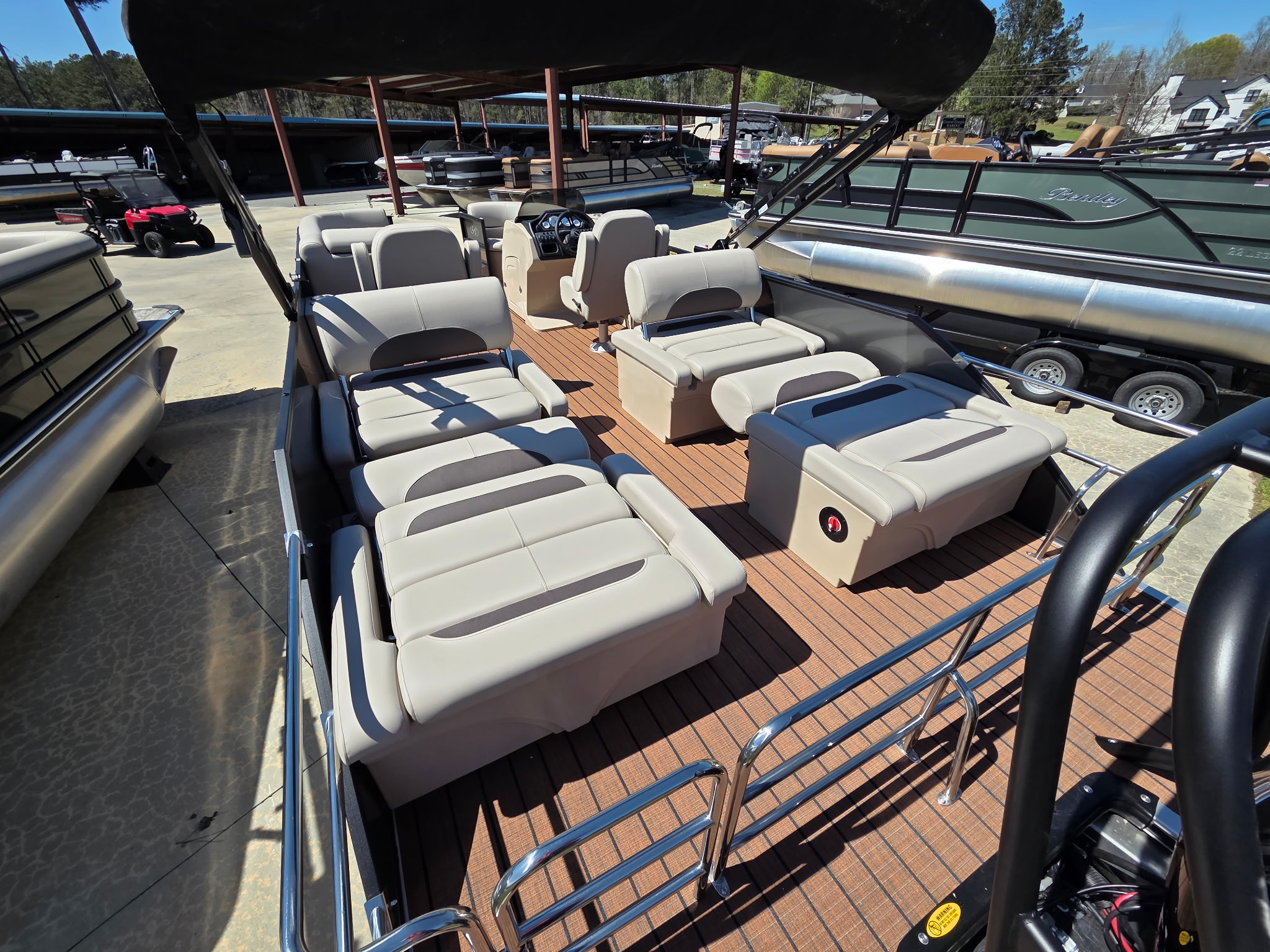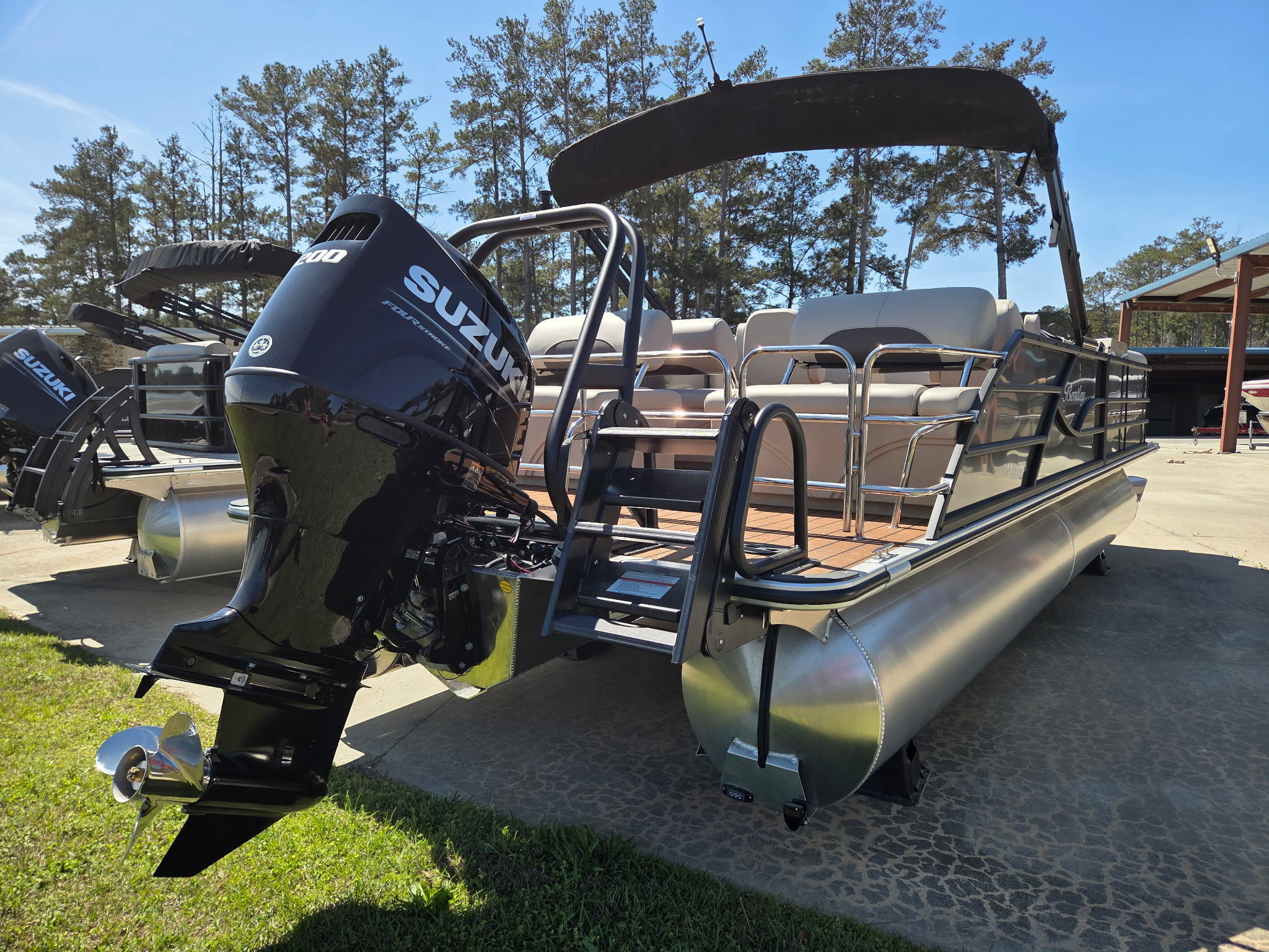 Elevate your boating experience with the 2026 Bentley 243 Quad, powered by a Suzuki 200 for smooth, powerful performance on the water.