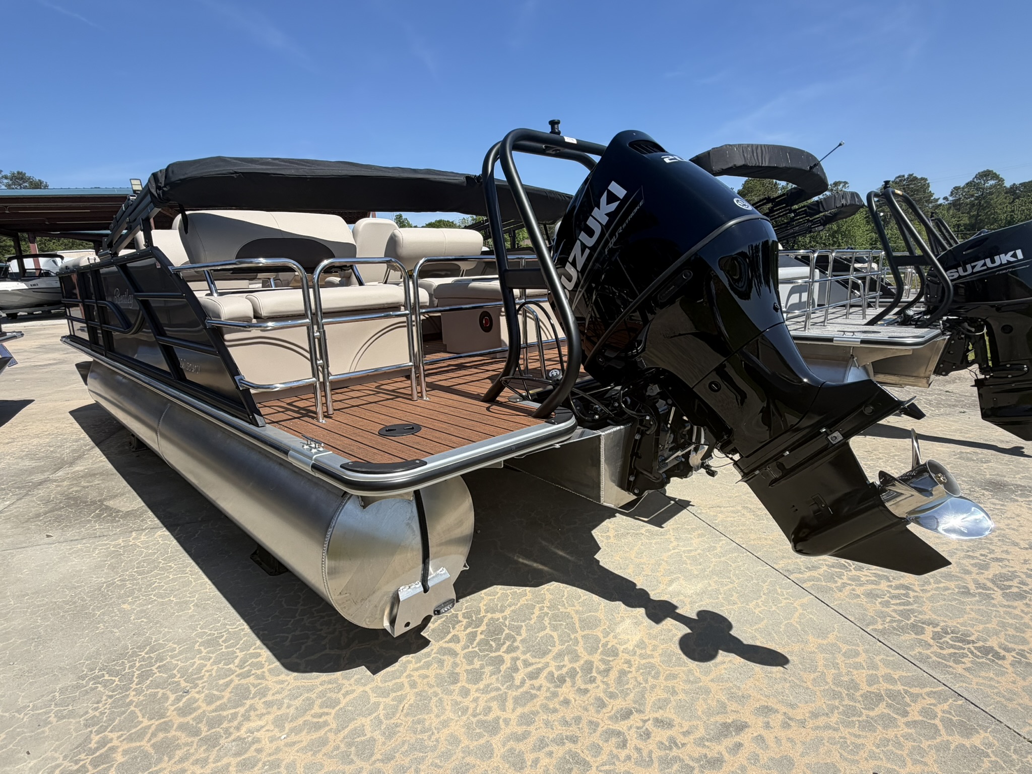 Elevate your boating experience with the 2026 Bentley 223 Quad, powered by a Suzuki 200 for smooth, powerful performance on the water.