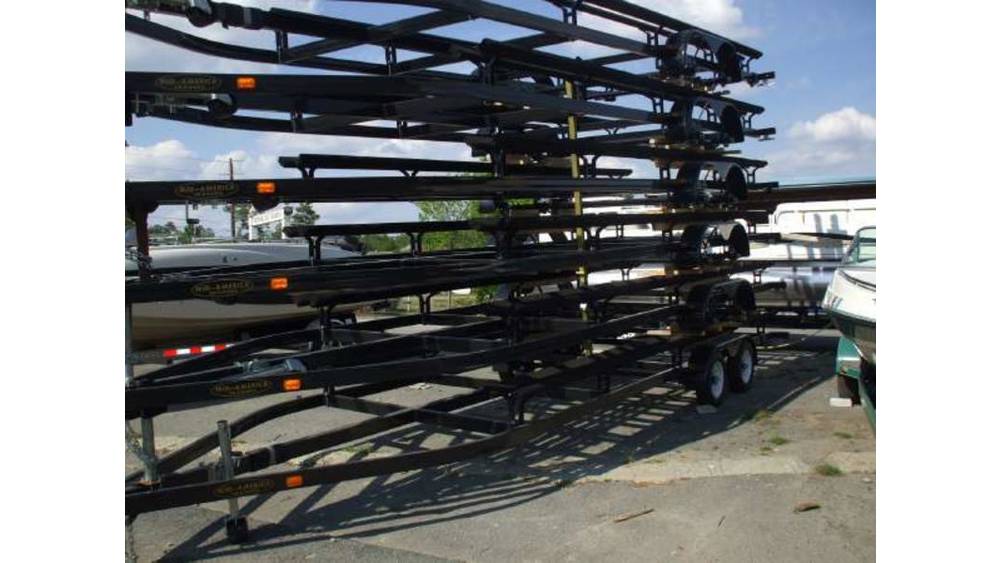 Mid-America 20' pt20/13 painted pontoon boat trailer. 13" tires and a 3 step boarding ladder. 20' pontoon boat trailer single axle with adjustable bunks $3295.