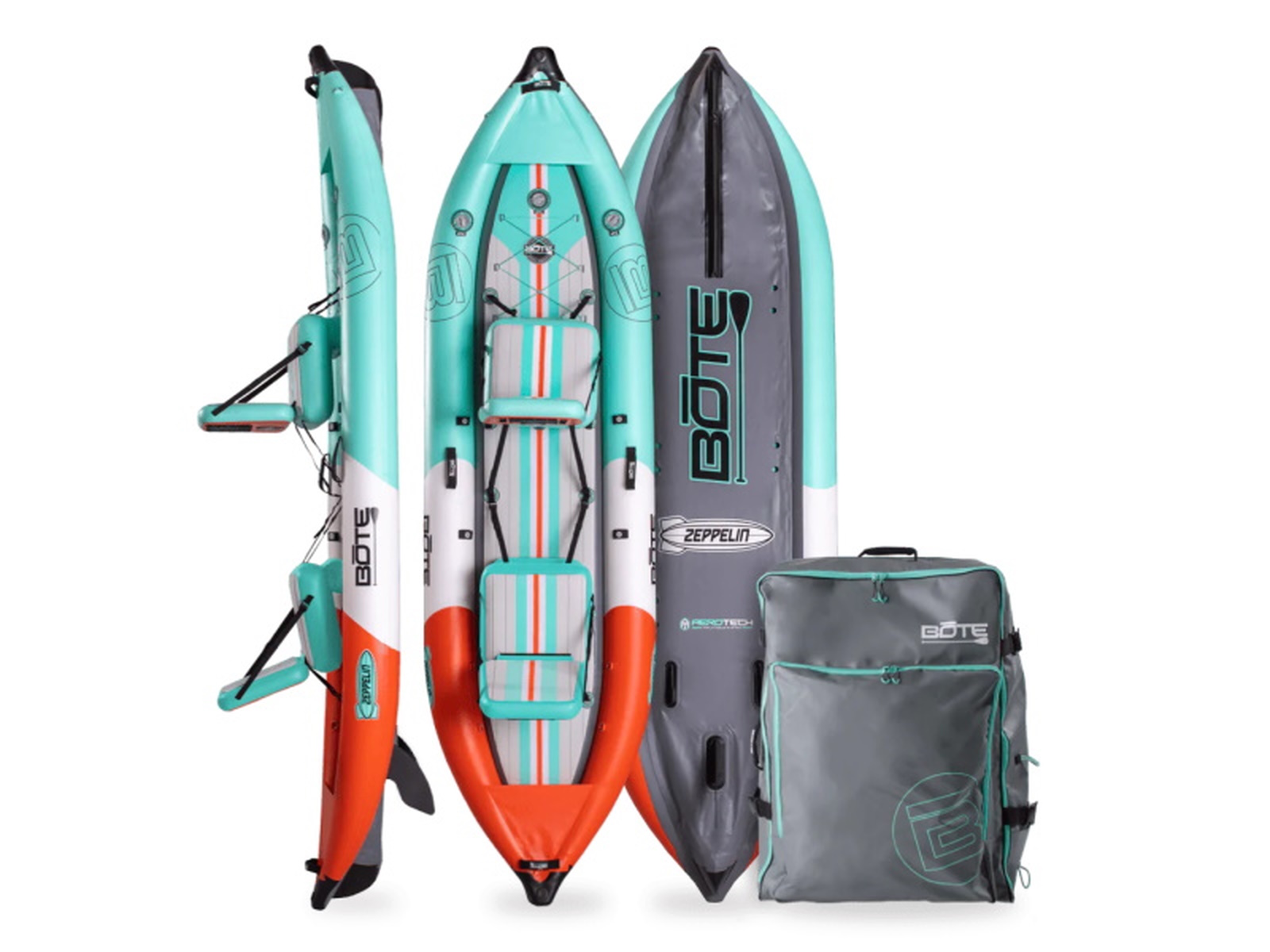 The result of a timely tryst between a highly utilitarian father and a swiss army-like mother, the Zeppelin is the most versatile kayak in the BOTE waters. A self-draining hull, removable floor chamber, and optional second seat differentiate the Zeppelin from its stablemates. An inflatable watership that welcomes the individual and tandem alike.