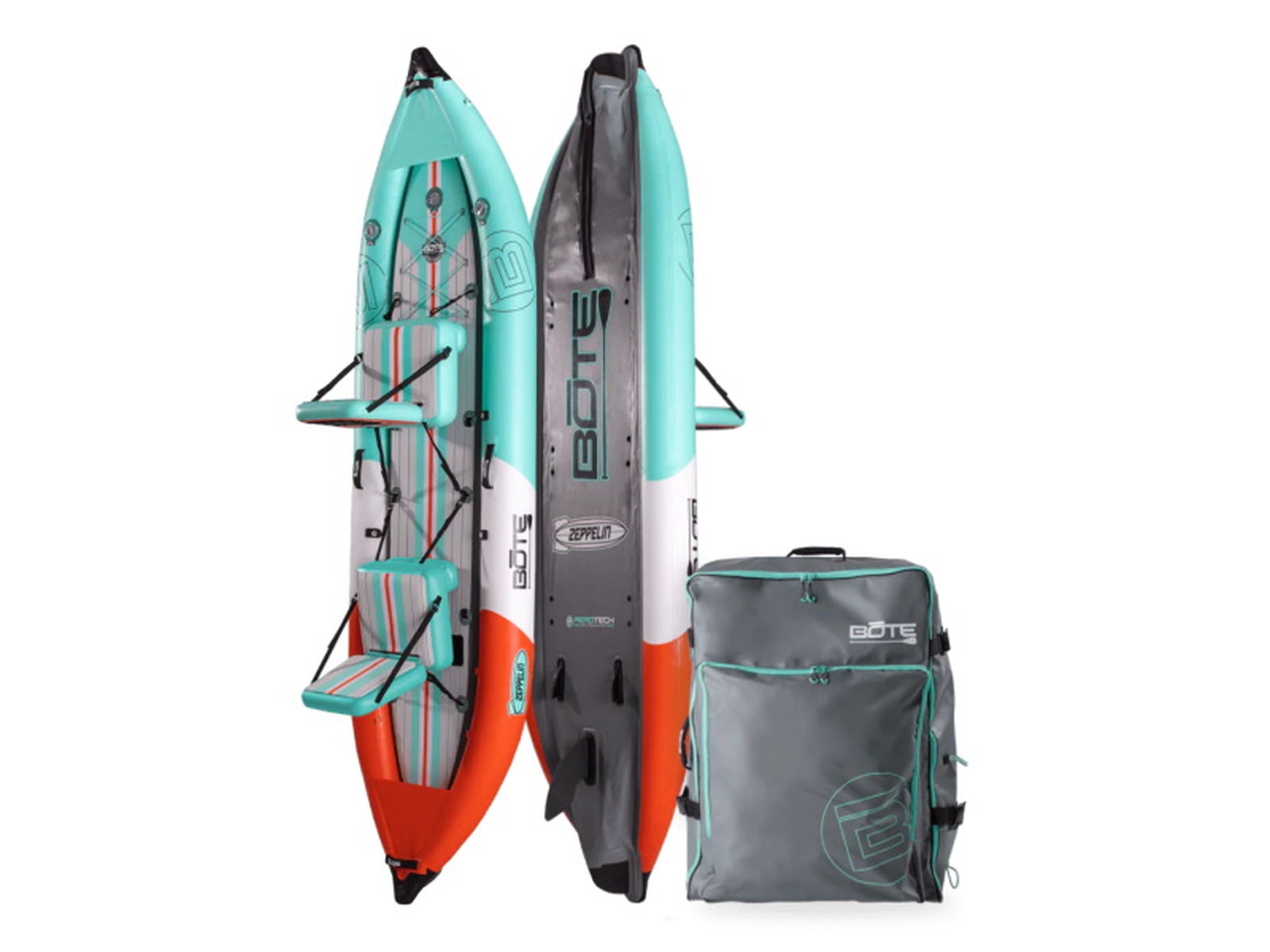 The result of a timely tryst between a highly utilitarian father and a swiss army-like mother, the Zeppelin is the most versatile kayak in the BOTE waters. A self-draining hull, removable floor chamber, and optional second seat differentiate the Zeppelin from its stablemates. An inflatable watership that welcomes the individual and tandem alike.