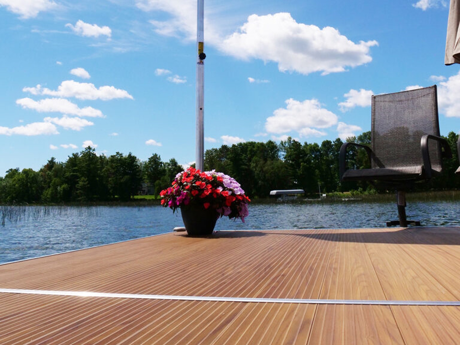 Floe’s rust-resistant, flush-mounted Easy-Level™ System lets you adjust your dock from the top side without getting in the water! All that’s needed is a cordless drill or FLOE’s leveling tool. For a clean, smooth appearance, the adjustment hole is neatly topped off with a flat plastic cap.