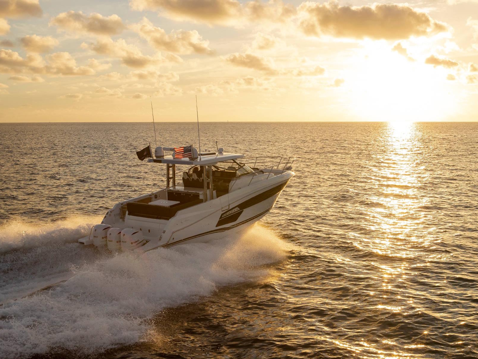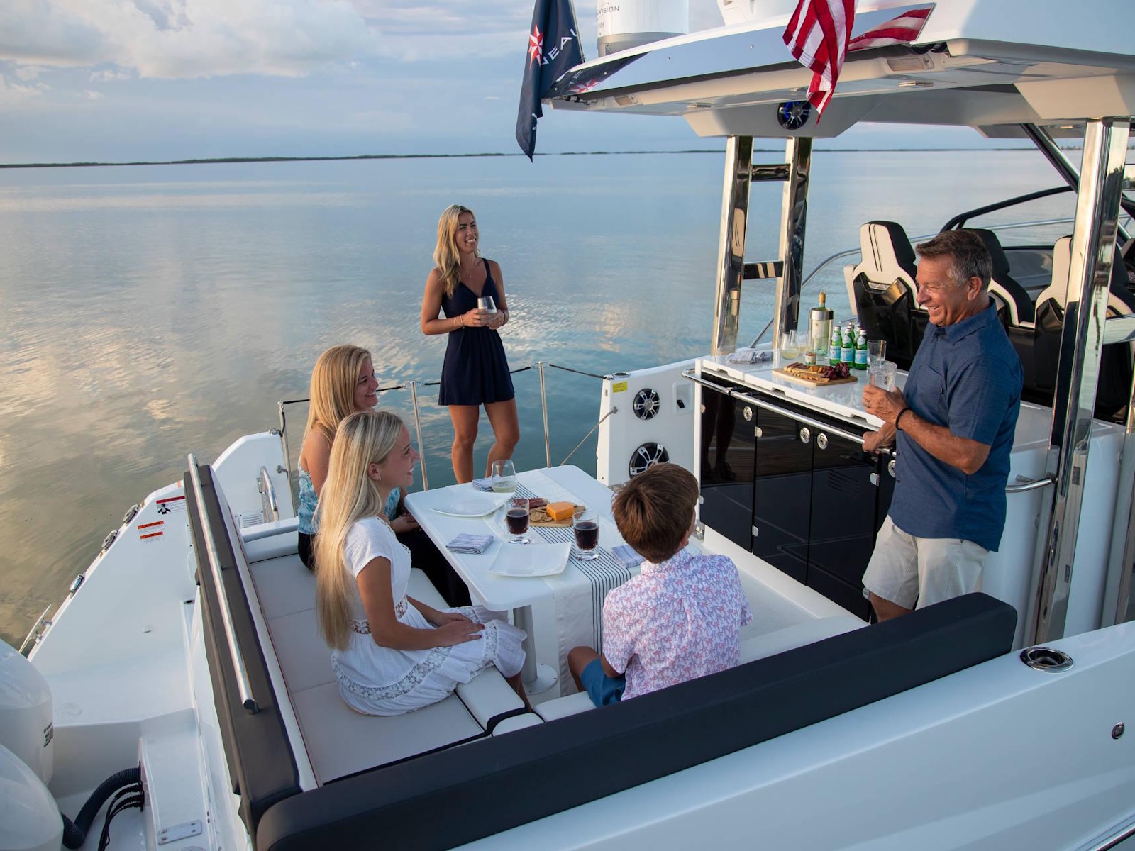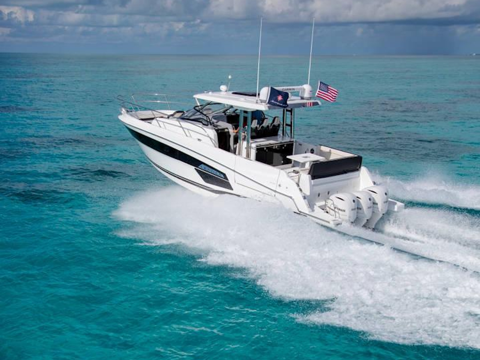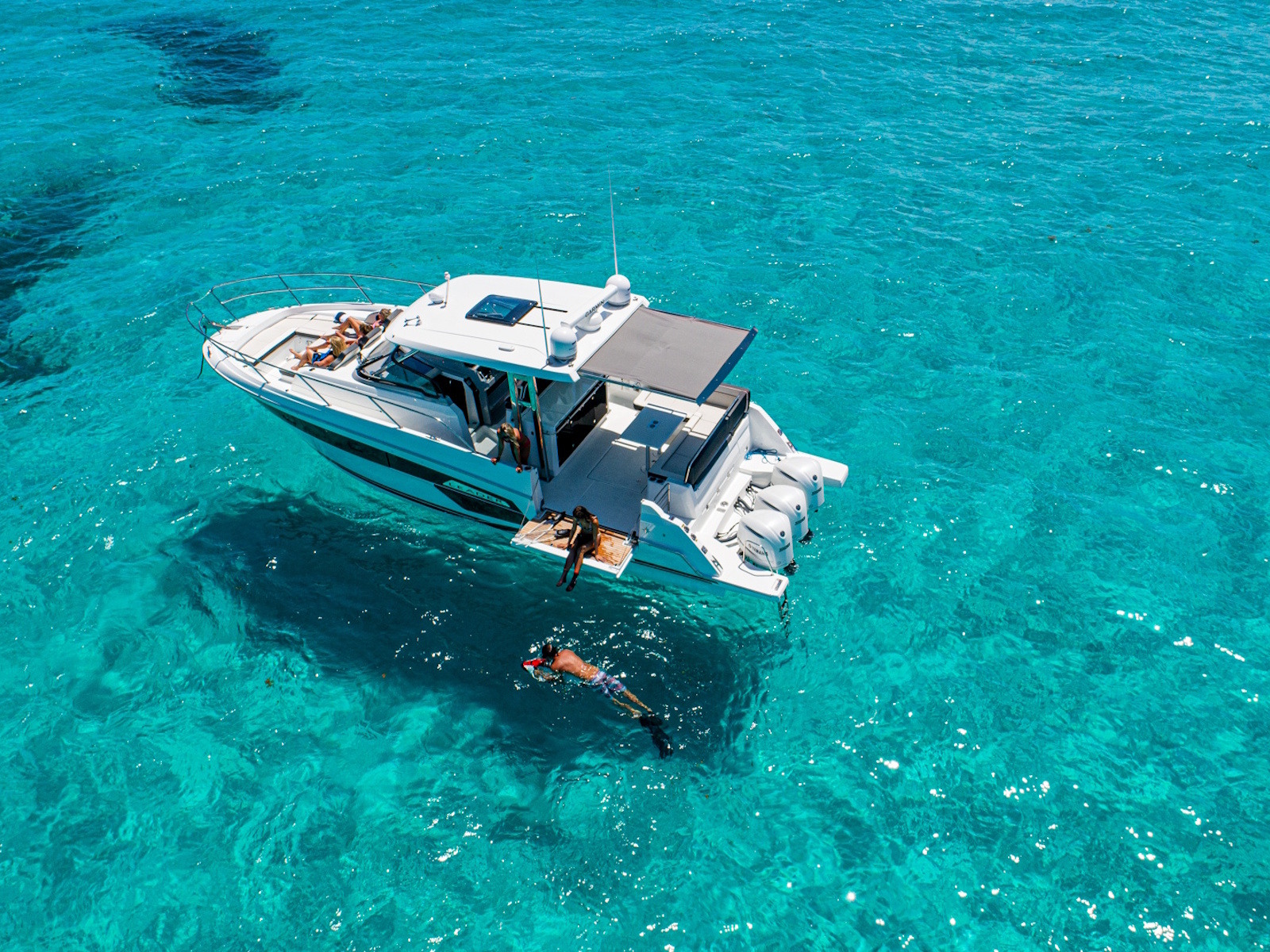 Spacious, comfortable, and extremely well equipped, on the interior as on the exterior, the Leader 12.5 also offers numerous options to suit your cruising lifestyle. The exterior galley fea-tures multiple configurations. The interior can be air conditioned. The cockpit can be sheltered from the sun by a sun awning or remote controlled SureShade awning. And, an optional gyro-scopic system stabilises the boat while cruising or stopped. With all of these qualities, the Leader 12.5 easily adapts to your lively outings with friends, as well as your family vacations.