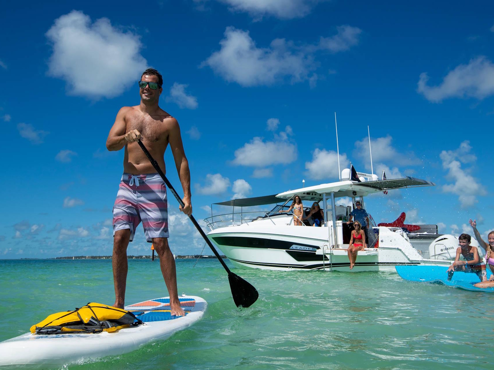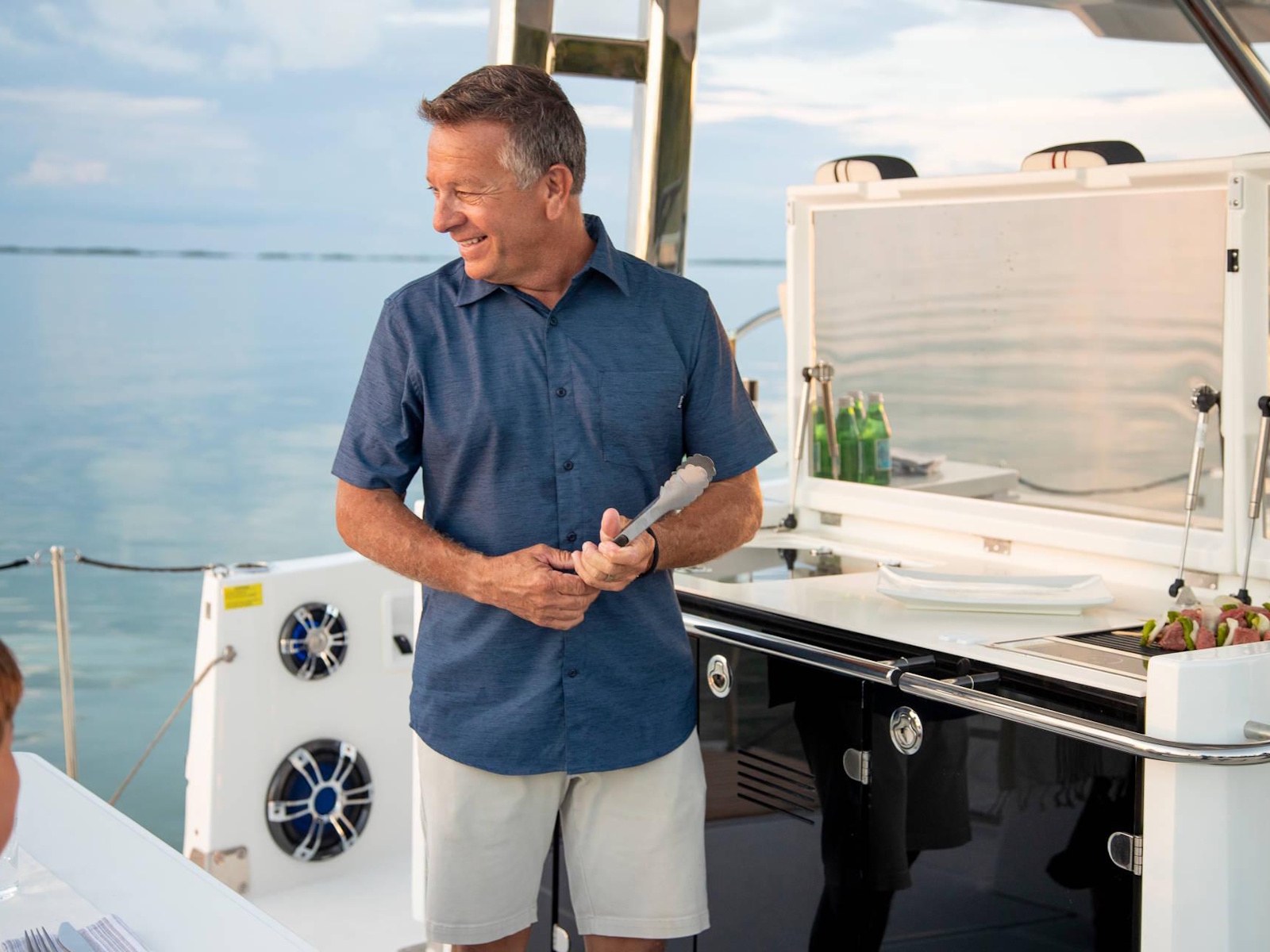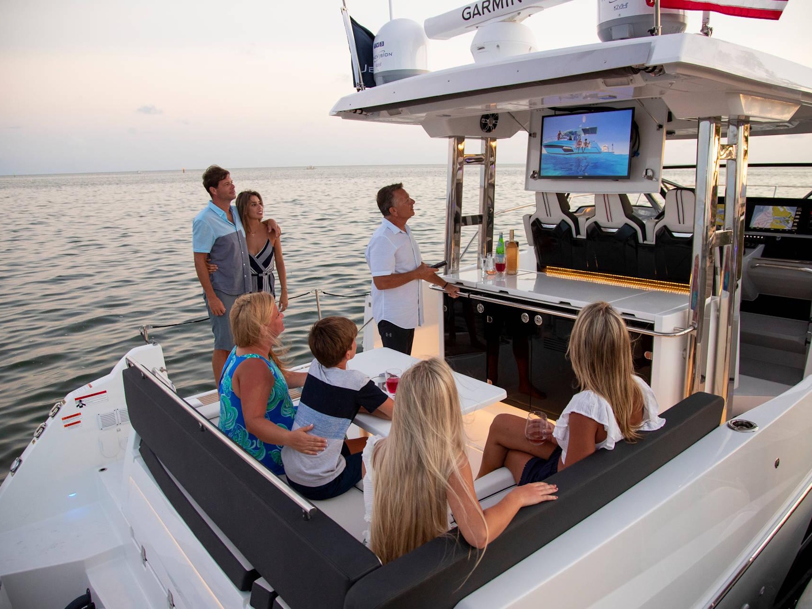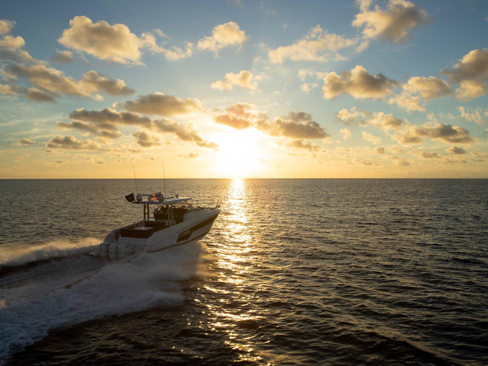 Spacious, comfortable, and extremely well equipped, on the interior as on the exterior, the Leader 12.5 also offers numerous options to suit your cruising lifestyle. The exterior galley fea-tures multiple configurations. The interior can be air conditioned. The cockpit can be sheltered from the sun by a sun awning or remote controlled SureShade awning. And, an optional gyro-scopic system stabilises the boat while cruising or stopped. With all of these qualities, the Leader 12.5 easily adapts to your lively outings with friends, as well as your family vacations.