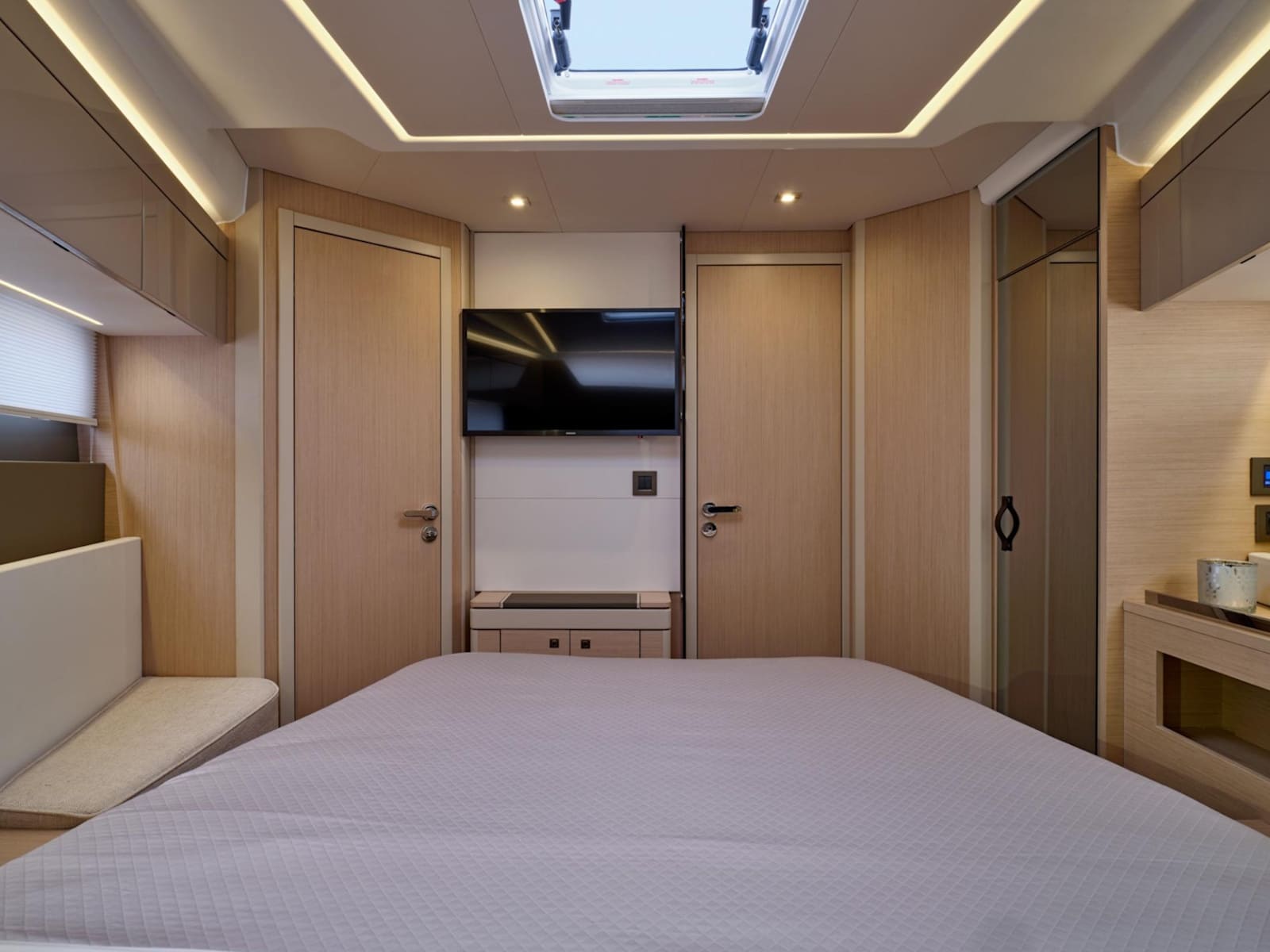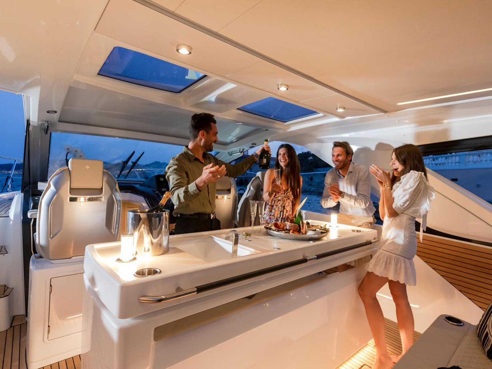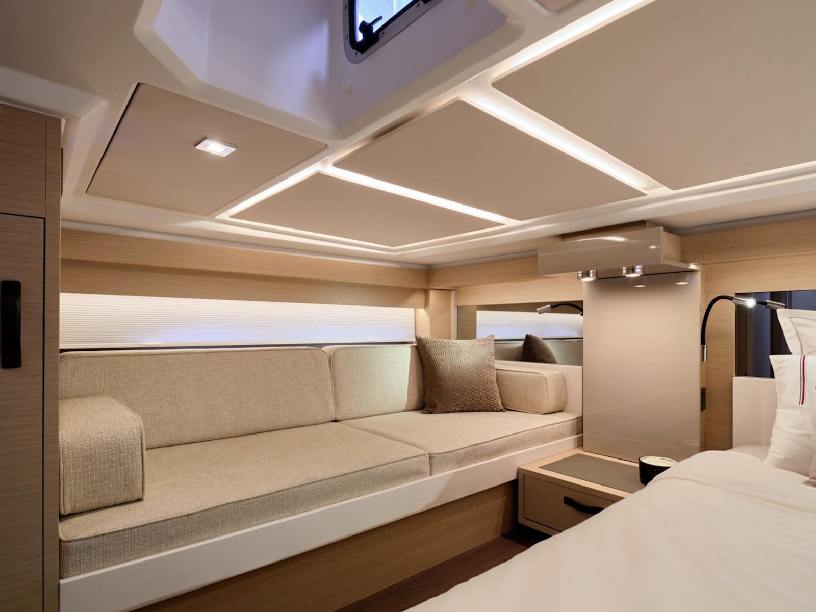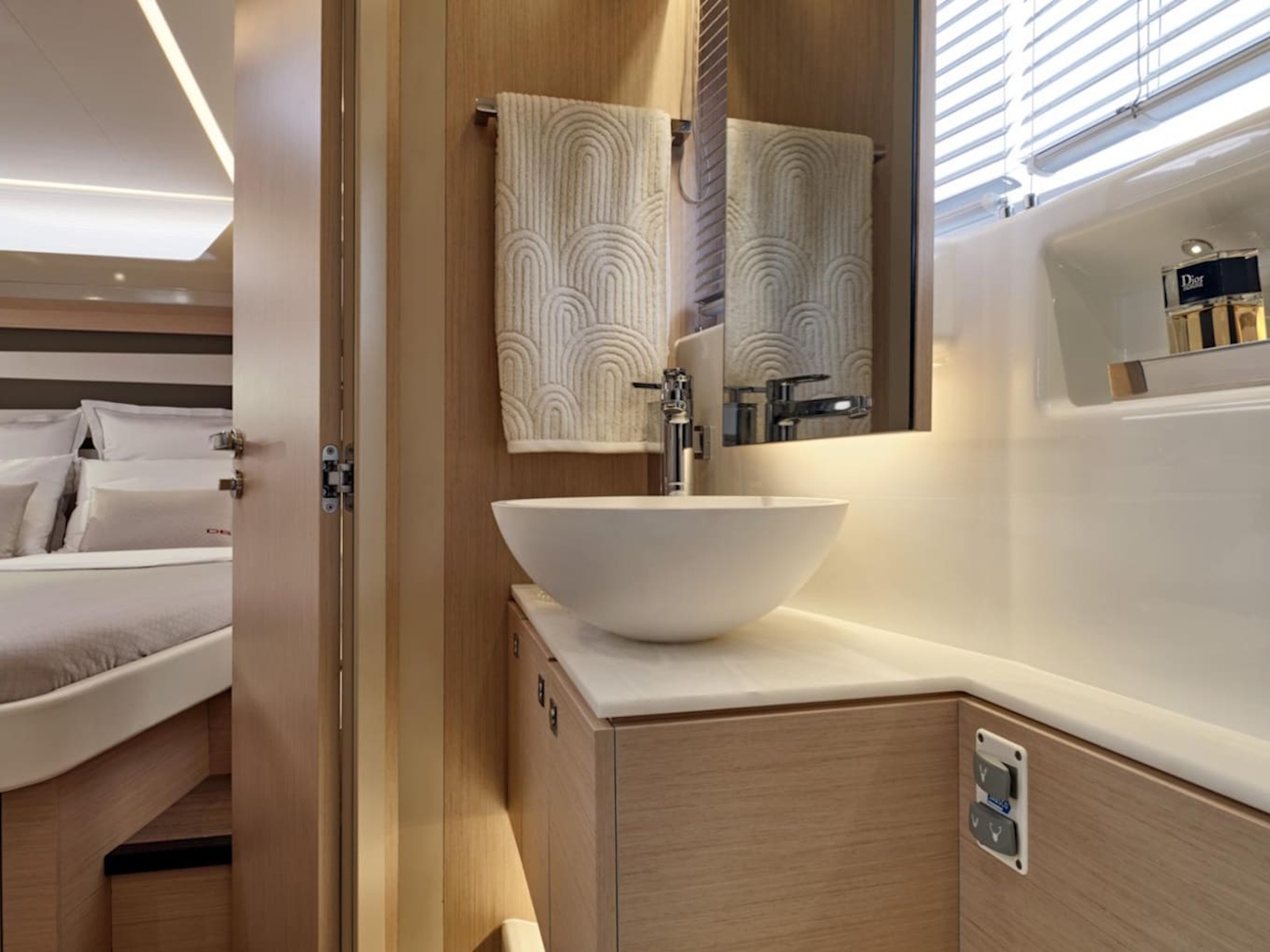 Dedicated to the pleasures of sea and sun, the DB/43 IB features an attractive, inviting interior. High-end furnishings afford exceptional comfort for spending a night on board with a couple of friends: the owner's cabin is spacious and bright, as well as the full-beam guest cabin, boasting a double berth and a third possible berth. With a Beach Club atmosphere on deck, under the sun or under the stars, surrounded by your guests, you can create unforgettable memories in dream locations.