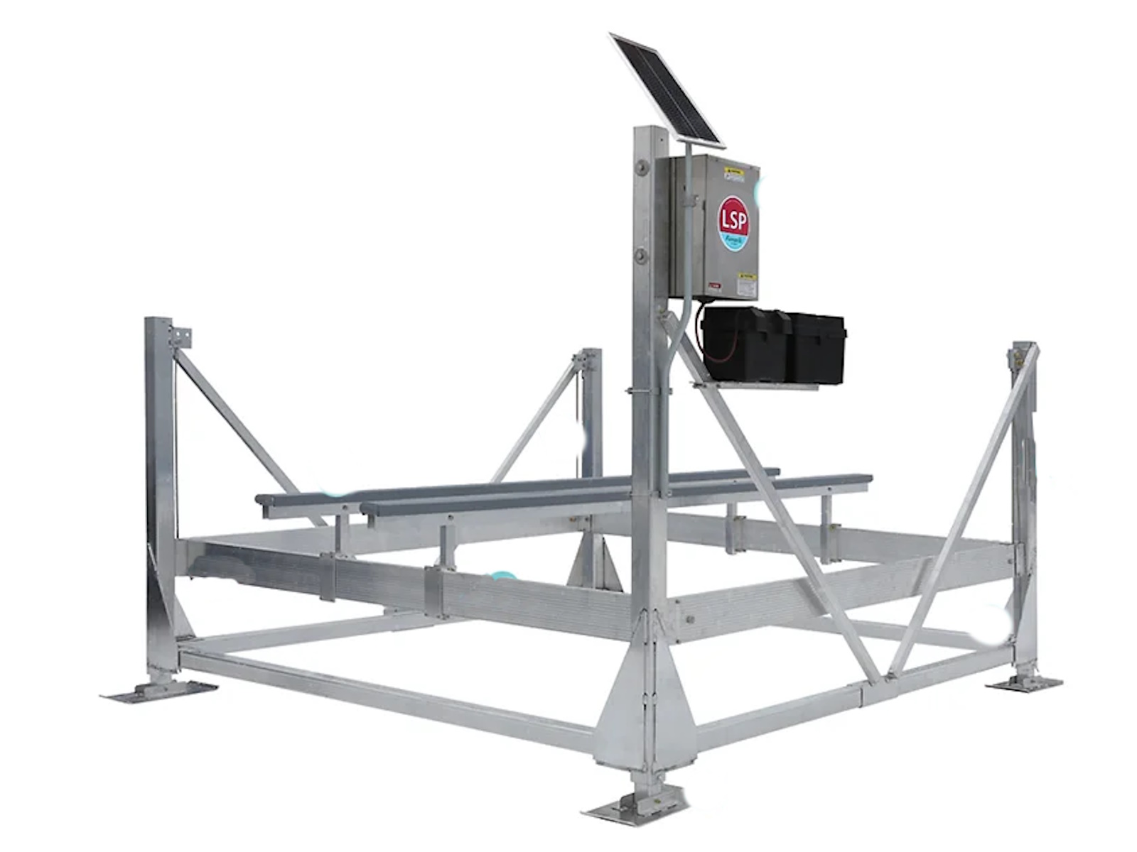 Rear lifting cradle designed to dead lift 5,000 lbs so V-drive tower boats are easier to place on lift. 120" wide.