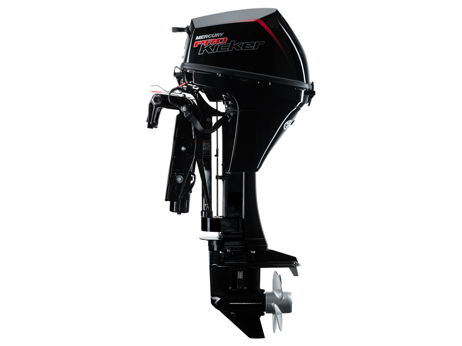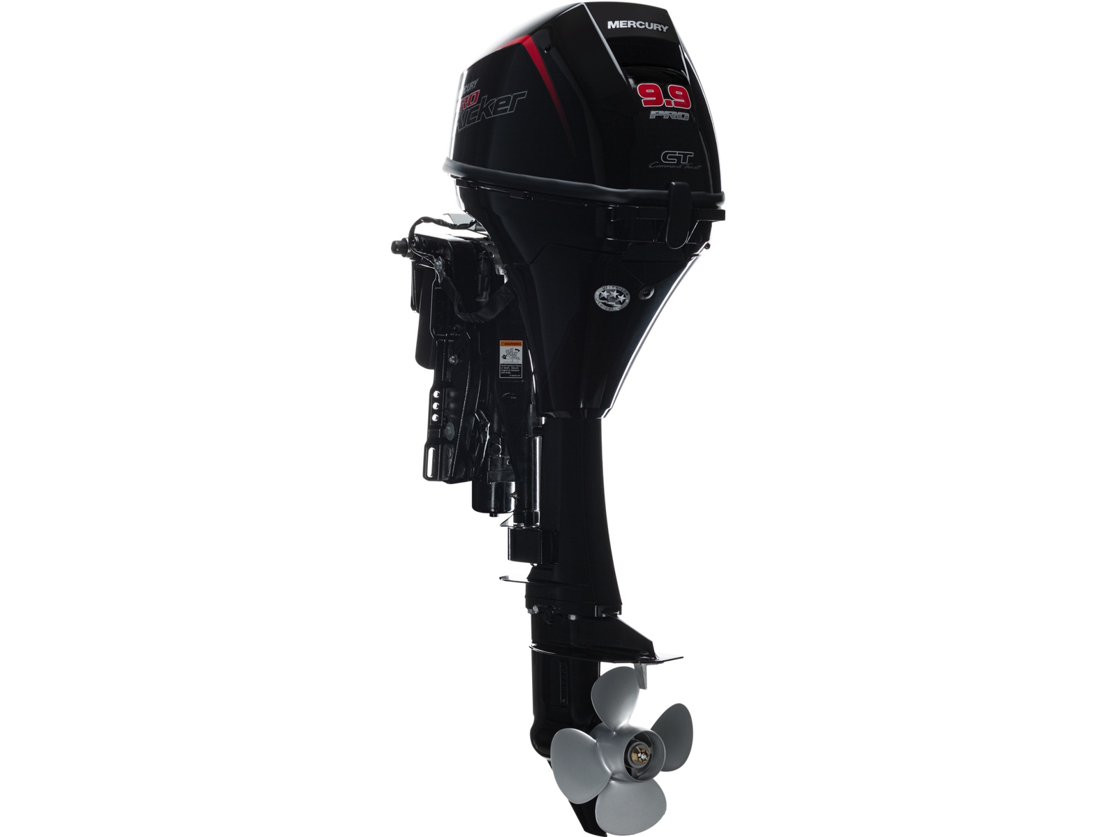 Mercury ProKicker outboards used for recreational purposes come with a standard three-year limited warranty and industry-leading three-year corrosion warranty. 15/25HP TILLER • Adjustable Vertically and Laterally For comfortable steering • Reversible Throttle Grip For left- or right-handed operation • Oversized Shift Lever • Easy-Reach Stop Button • Oversized Throttle Friction Knob 9.9HP TILLER • Shift-in-Grip For one-handed operation • Throttle Friction Knob For locking in speed • Full-Tilt Lock For securing tiller while trailering • Easy-Reach Stop Button