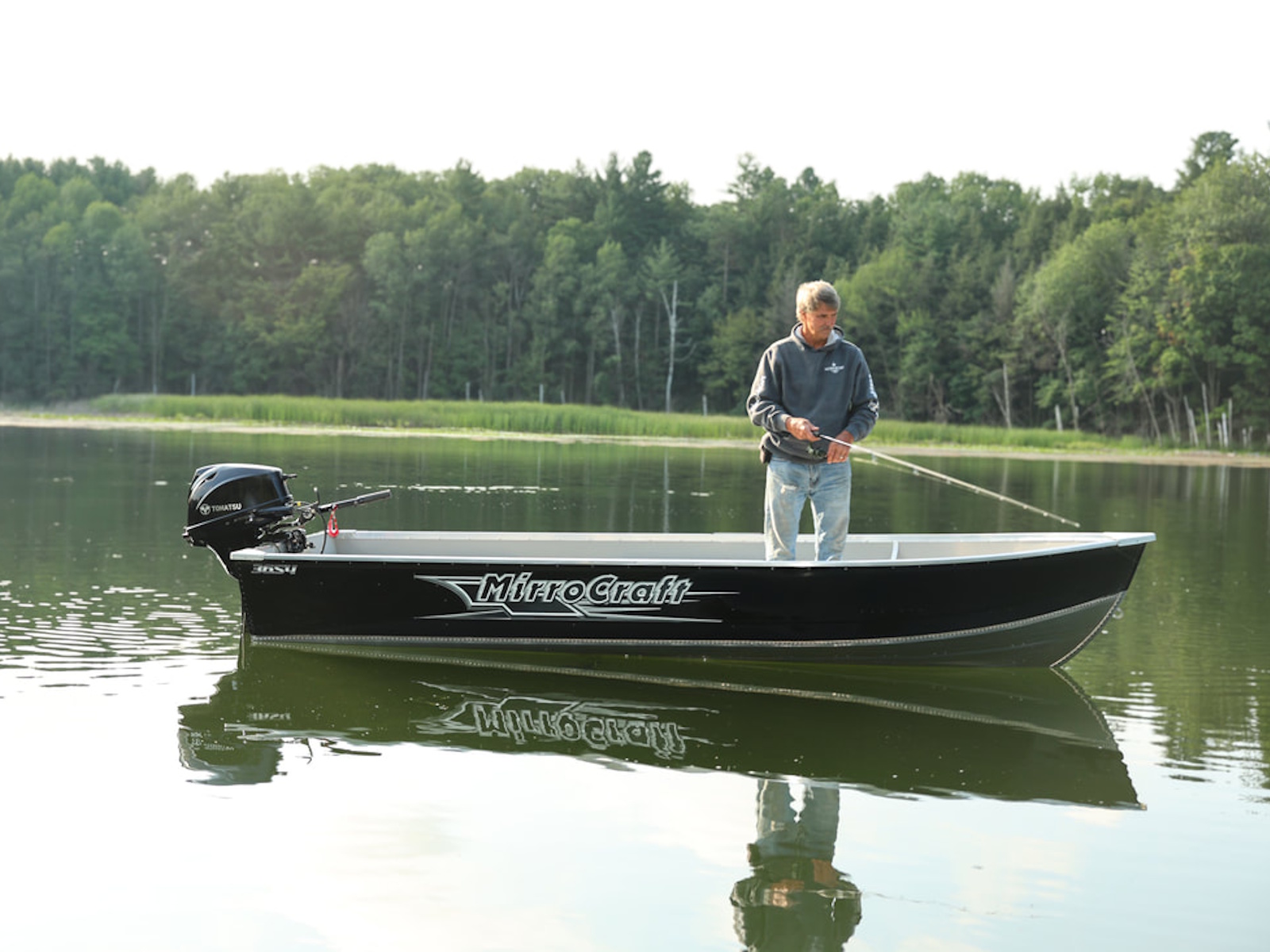 Function is what the all aluminum MirroCraft Utility V boat series is all about. They are built as tough and rugged as can be to stand up to the rigors of years of hard use. Popular with boat camps and resorts these utility boats are very low maintenance. Cross ribs spaced every 10" and a strong composite transom are standard features. Add these with extra bracing along with rigid tank seats, insure a very strong and safe hull. All interiors are finished in a non-glare, non-slip finish and all utility fish models feature transom carry handles. Utility V boat models range from 12'-16' and these boats have max horsepower ratings that range from 10 to 25 HP.