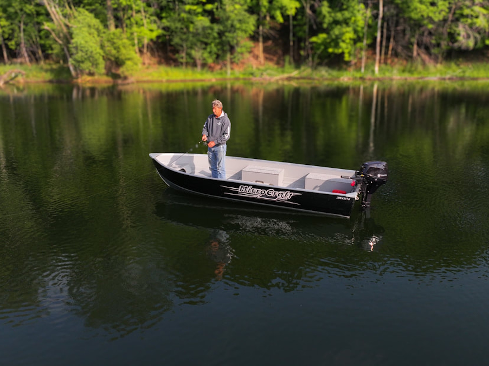 Function is what the all aluminum MirroCraft Utility V boat series is all about. They are built as tough and rugged as can be to stand up to the rigors of years of hard use. Popular with boat camps and resorts these utility boats are very low maintenance. Cross ribs spaced every 10" and a strong composite transom are standard features. Add these with extra bracing along with rigid tank seats, insure a very strong and safe hull. All interiors are finished in a non-glare, non-slip finish and all utility fish models feature transom carry handles. Utility V boat models range from 12'-16' and these boats have max horsepower ratings that range from 10 to 25 HP.