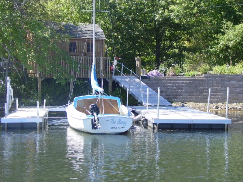 Shore Side Docks Floating dock proudly rides atop the water finished with our drop-in decking design that provides that great clean deck and side rail for a beautiful, easy to maintain (and enjoy) dock system.