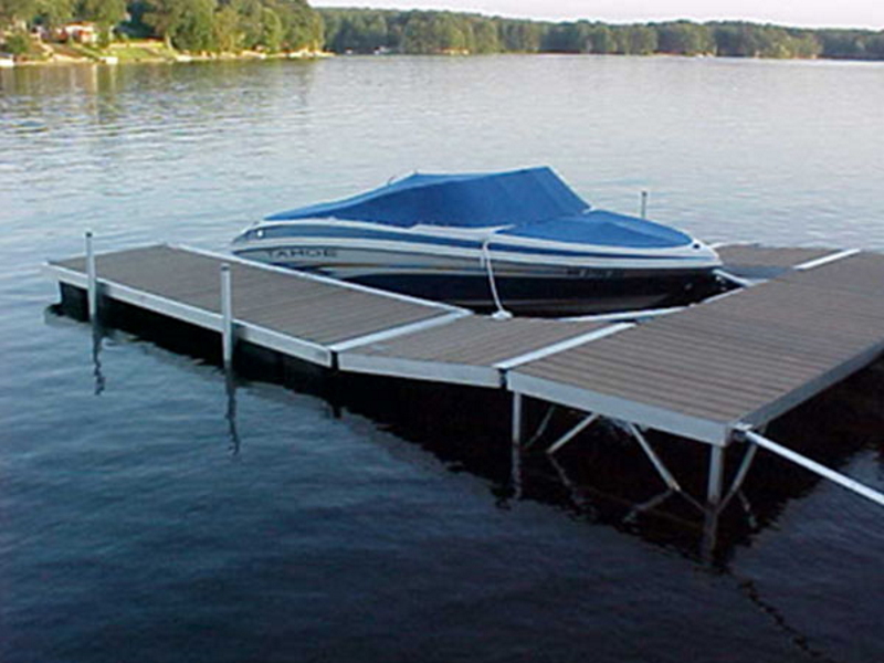 Shore Side Docks Floating dock proudly rides atop the water finished with our drop-in decking design that provides that great clean deck and side rail for a beautiful, easy to maintain (and enjoy) dock system.