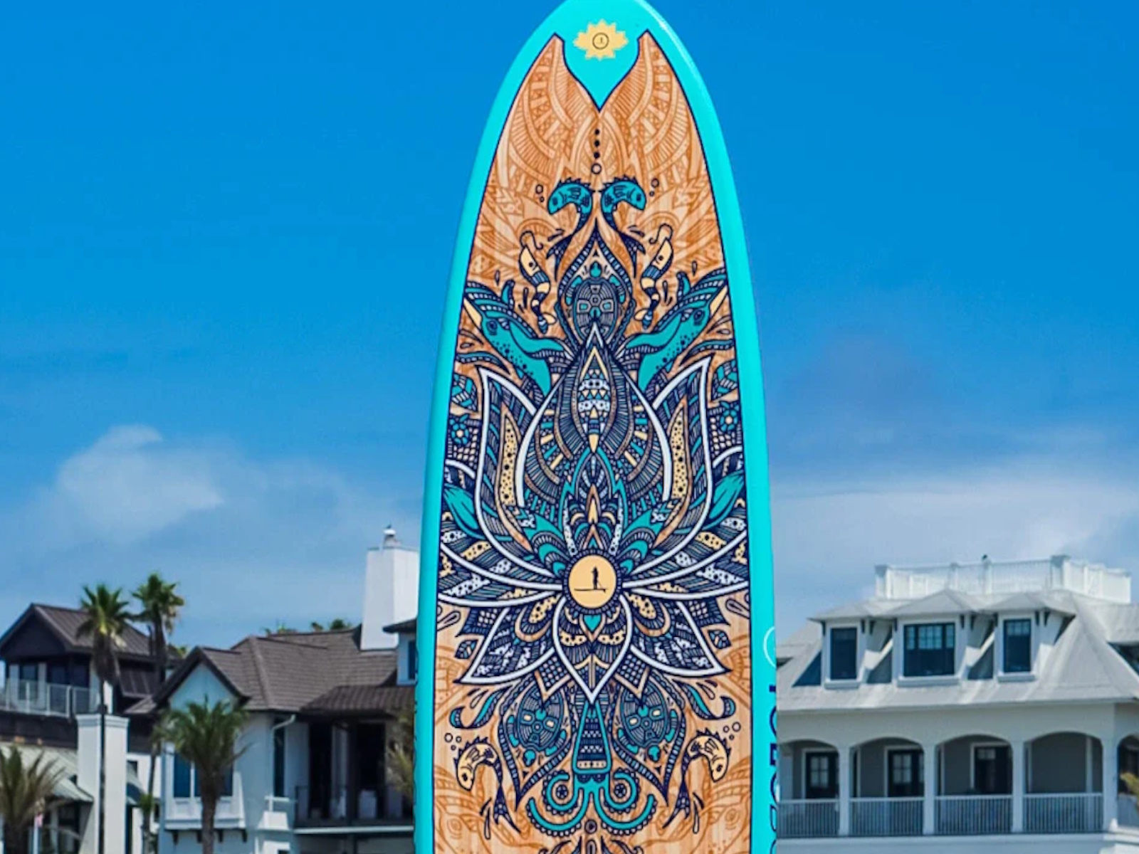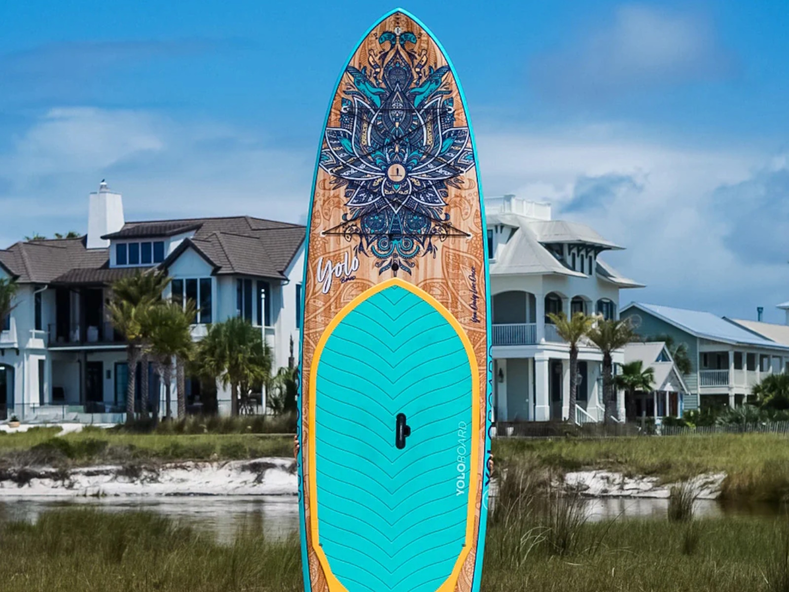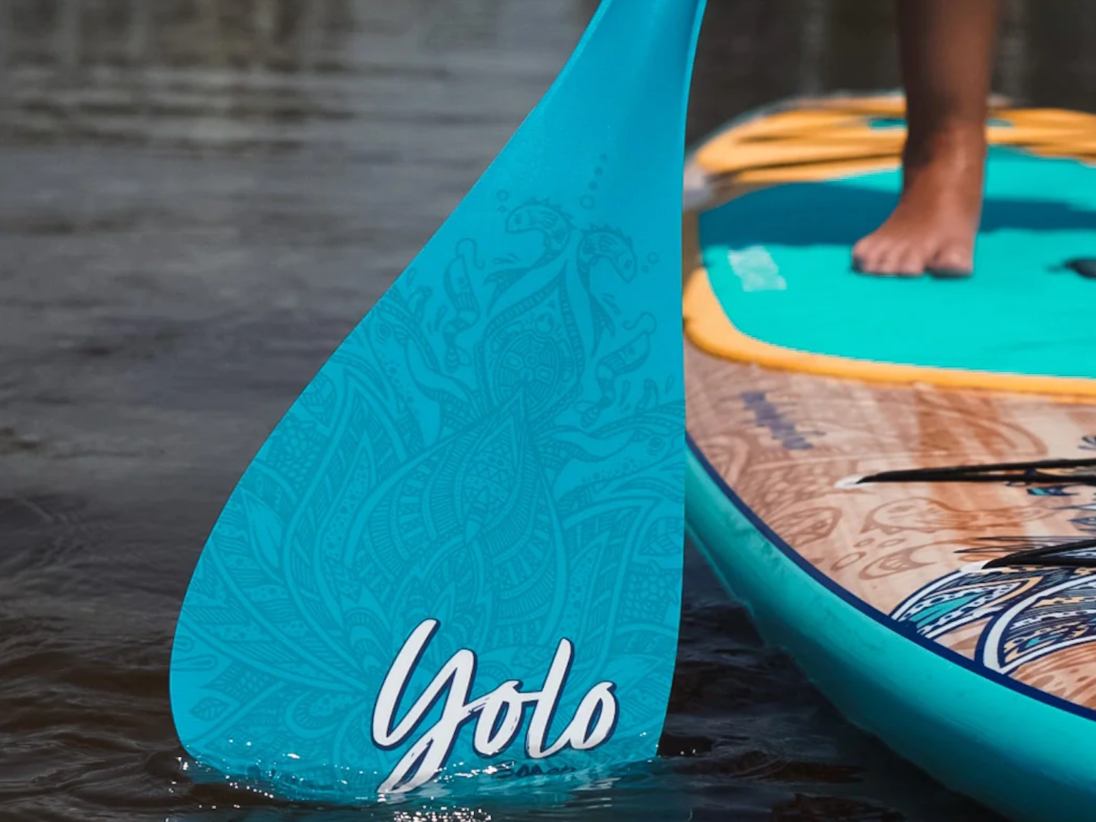 You Only Live Once... Why settle for less than the best? YOLO Board is renowned for making the highest-quality and most stunning Stand Up Paddleboards in the industry. The 10'6 Original is the perfect combination of beauty, light weight and performance. This handcrafted epoxy/fiberglass board features limited edition custom artwork from Jake Meyer. All of the high-end features are included: dual bungee cargo system, integrated cooler tie-downs and GoPro mount, easy-to-carry LiftSUP pop out handle, custom fiberglass fin, and super comfy EVA non-slip deck pad. A wide, flat deck and ample volume to provide an easy, stable ride. The YOLO Original is a great all-around SUP for any paddler, regardless of skill level.